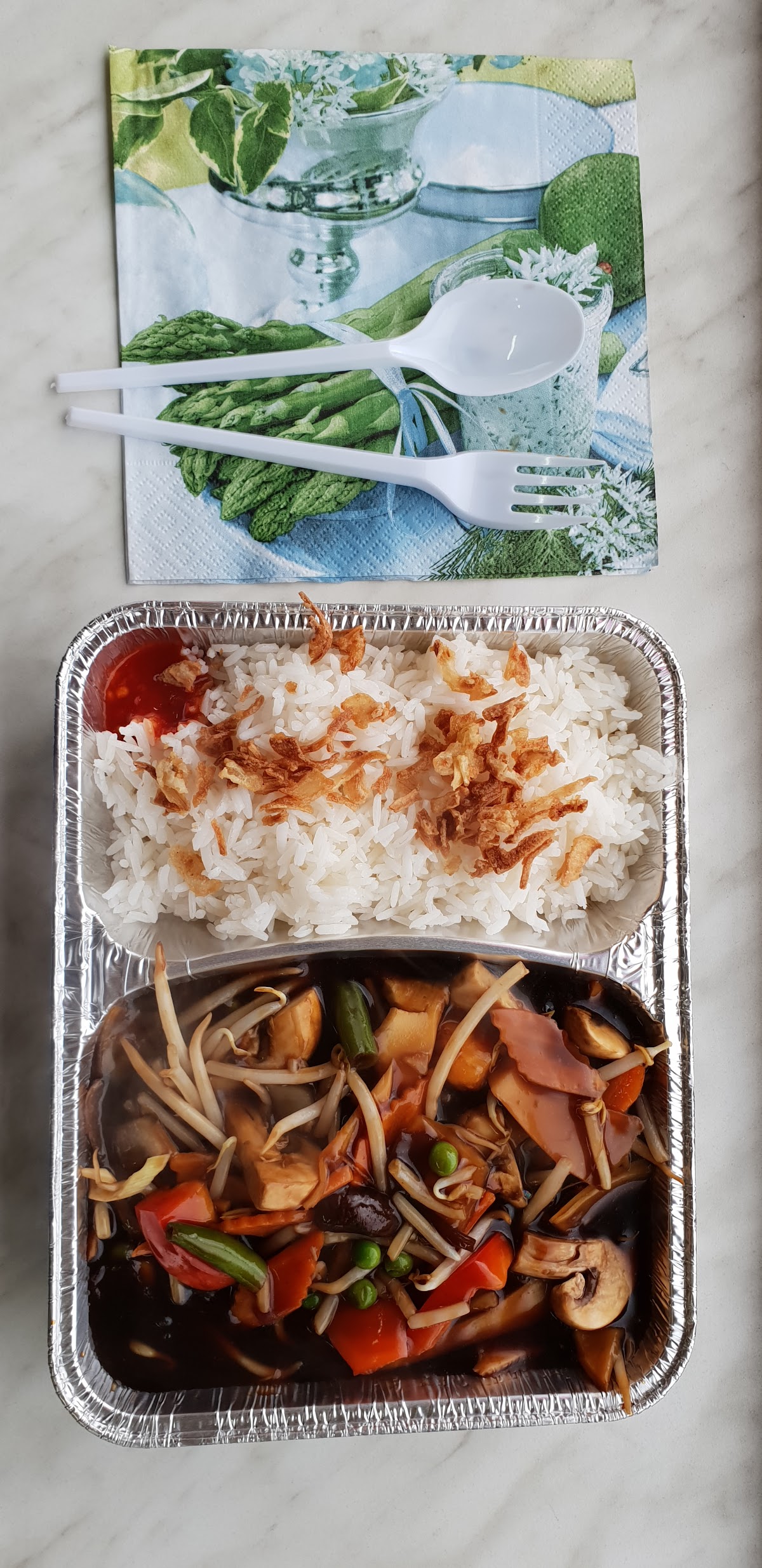 The prices are fair for the portion sizes. For example: Fried noodles with vegetables, eggs and chicken cost € 3.80. A little more "green" (leeks, spring onions, ...) would have done the dish optically.
