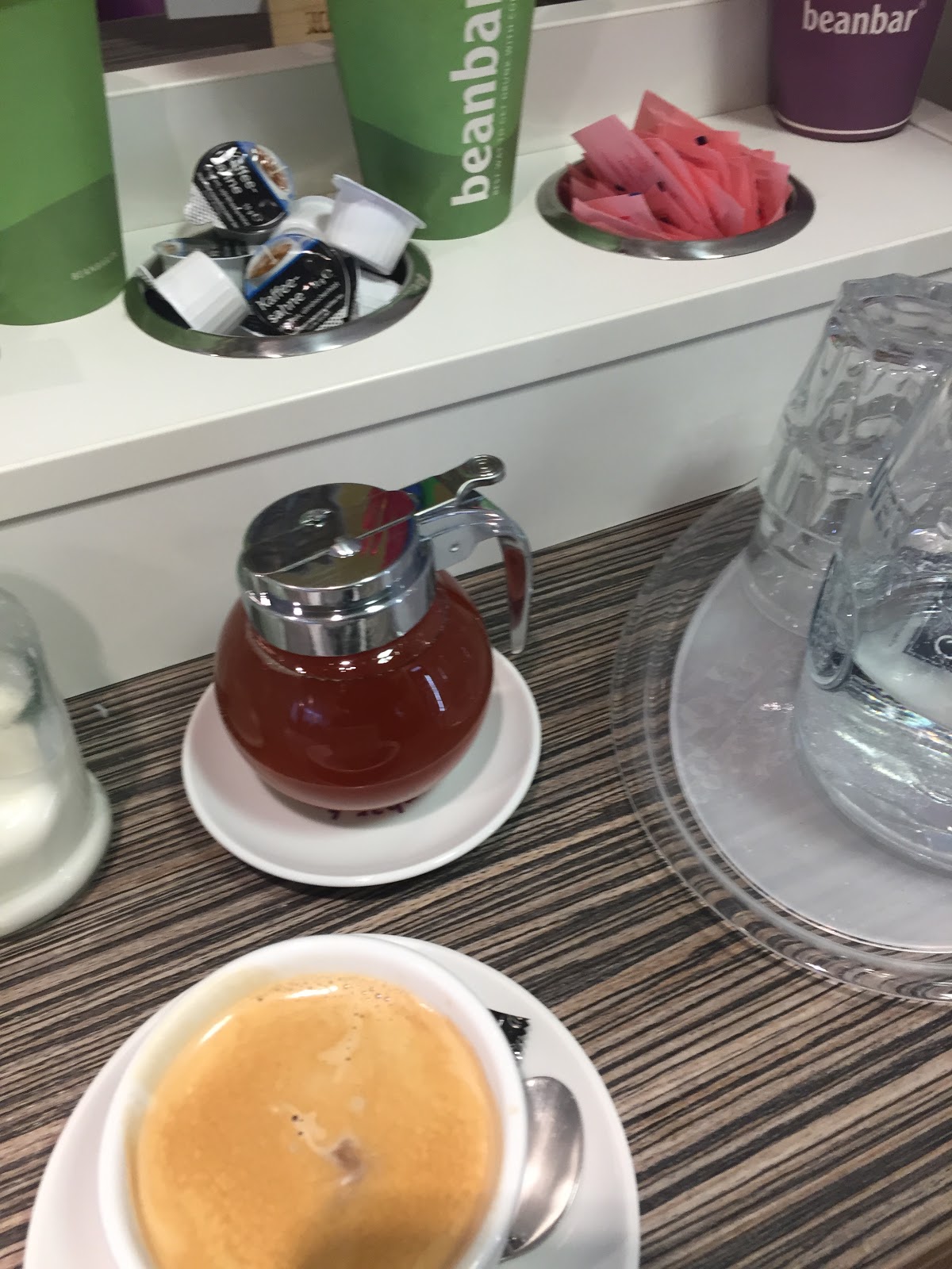 (Translated by Google) A little insider tip on the top floor in the Hugendubel, which is worth a visit. Not necessarily because of the different cakes, which also taste good; more because of the smoothies. Cost per glass is €4.50. All 4 varieties are delicious and above all very refreshing. I will treat myself to this more often in the future!