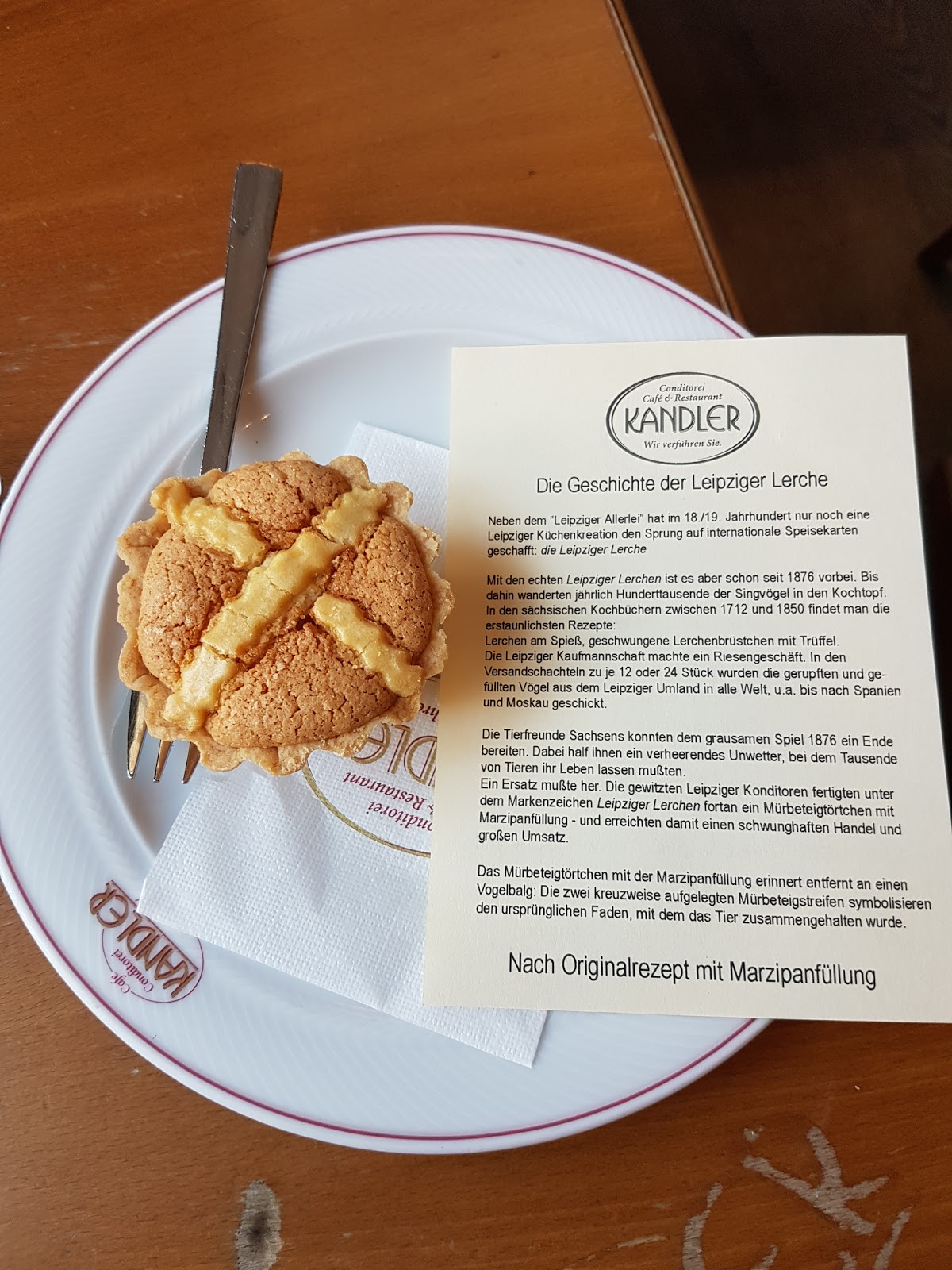 Great cafe to sample the Leipzig delicacies of Leipziger Lerche and the Leipziger Räbchen. Both are perfect for anyone who enjoys marsipan. The Leipziger Räbchen is small round donuts that comes with a cinnamon custard which was simply delicious whilst the Leipziger Lerche is a tart with jam filling and marsipan.