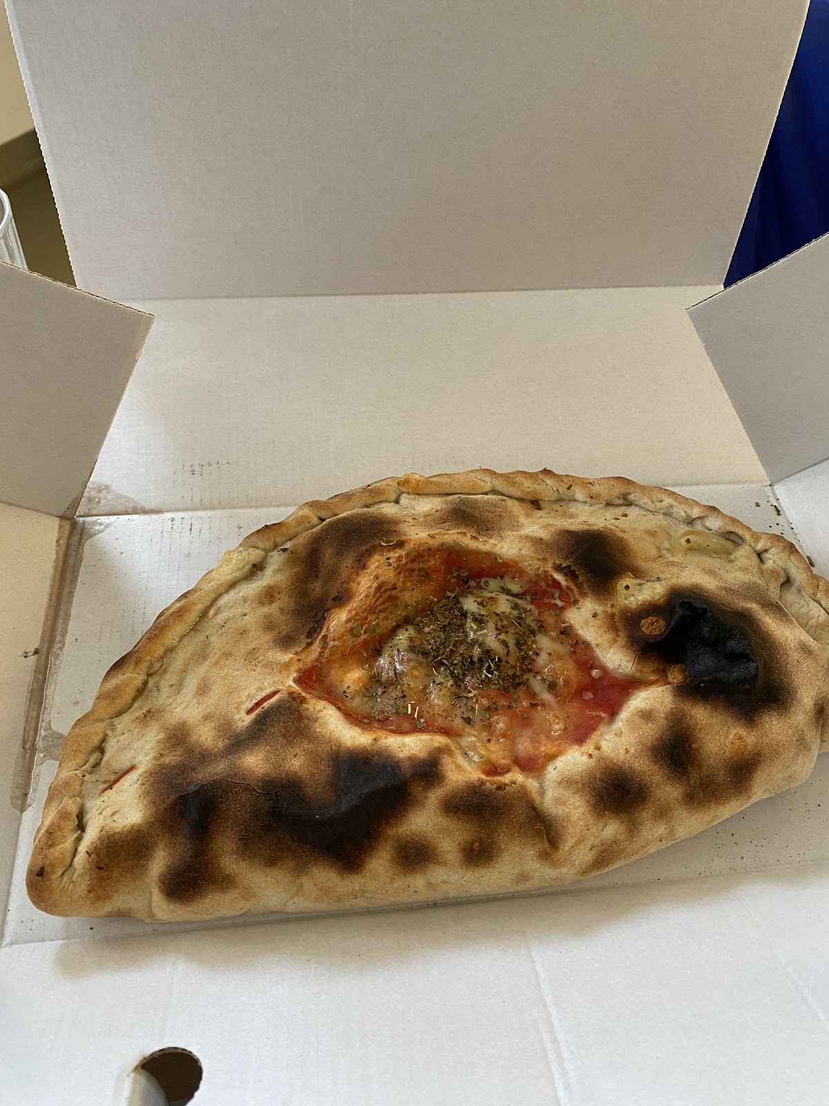 Es wurde eine Mega-Pizza bestellt, 52 cm. Leider unglaublich enttäuschend, das Bild sagt alles! Sie kam kalt an, Pizza konnte man kaum schneiden und geschmacklich war sie auch nicht gut. Nehmt eine von den zwei kleineren Pizzen, die machen mehr satt und macht preislich viel mehr Sinn.