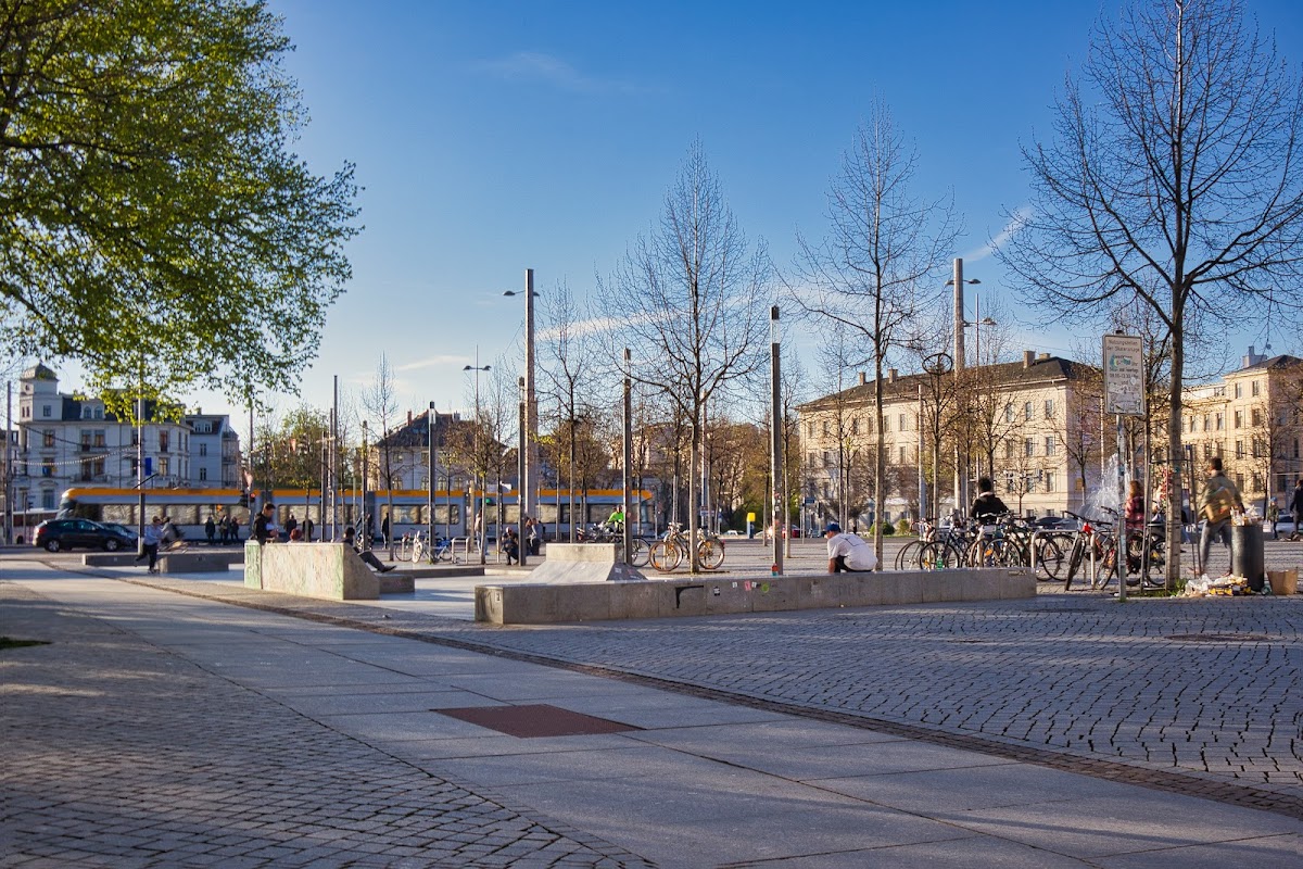 One of the coolest places in Leipzig to hang out listen to techno share drinks Skateboard play basketball and meet new people , definitely a recommend to anyone young visiting Leipzig and wants to see an interesting new place !