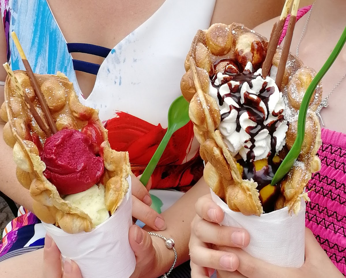 (Translated by Google) If you are looking for special and unusual types of ice cream, you will definitely find it here. There are also plenty of waffles in different variations, ice cream toppings and the insider tip - the * bubble waffles * ...