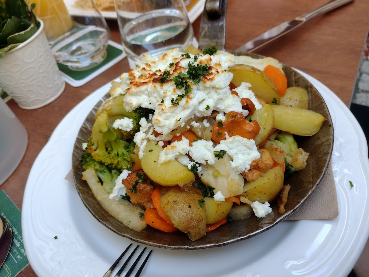 I had the Mutzbraten (Pork shish-kebab with Marjoram), Sauerkraut, and Kartoffelbaumkuchen (layers of cooked mashed pototoes topped on one another like a cake). Very delicious!! Only negative which I told the waiter, was that I only got one Kartoffelbaumkuchen and not two. ;-) My son said it was the best Sauerbraten that he had ever had.