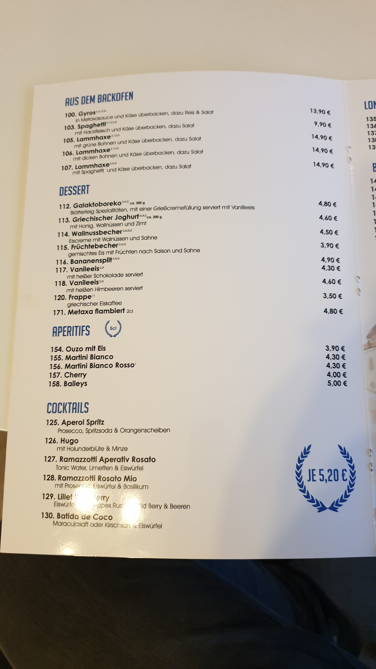(Translated by Google) We tried the buffet with 8 adults (13 €) and 2 children (7 €). We like to eat Greek and the buffet is a real recommendation. Tastes good and is varied. Only downside: the food is not particularly hot and the plates cold. A plate warmer would be great. Drink recommendation: the apple juice :-) does not taste like fish.