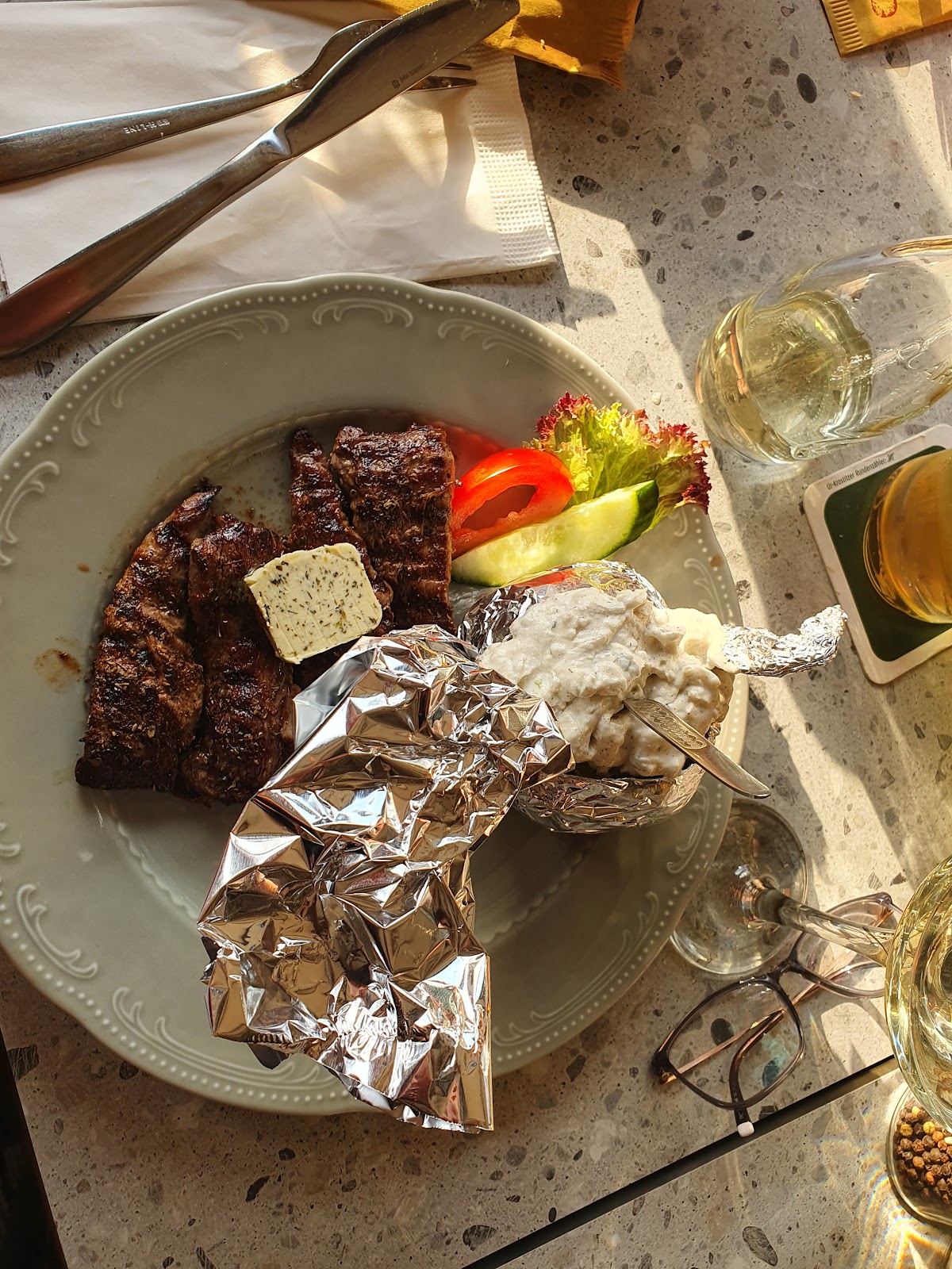 Das Essen war in Ordnung. Nicht aufregendes, aber auch nichts was es zu kritisieren gab. Der Tzatziki war im Vergleich zur restlichen Portion mehr als dürftig. Die Bedienung war nett, aber offensichtlich ungelernt, sodass dem Service ein bisschen der Schliff fehlt.