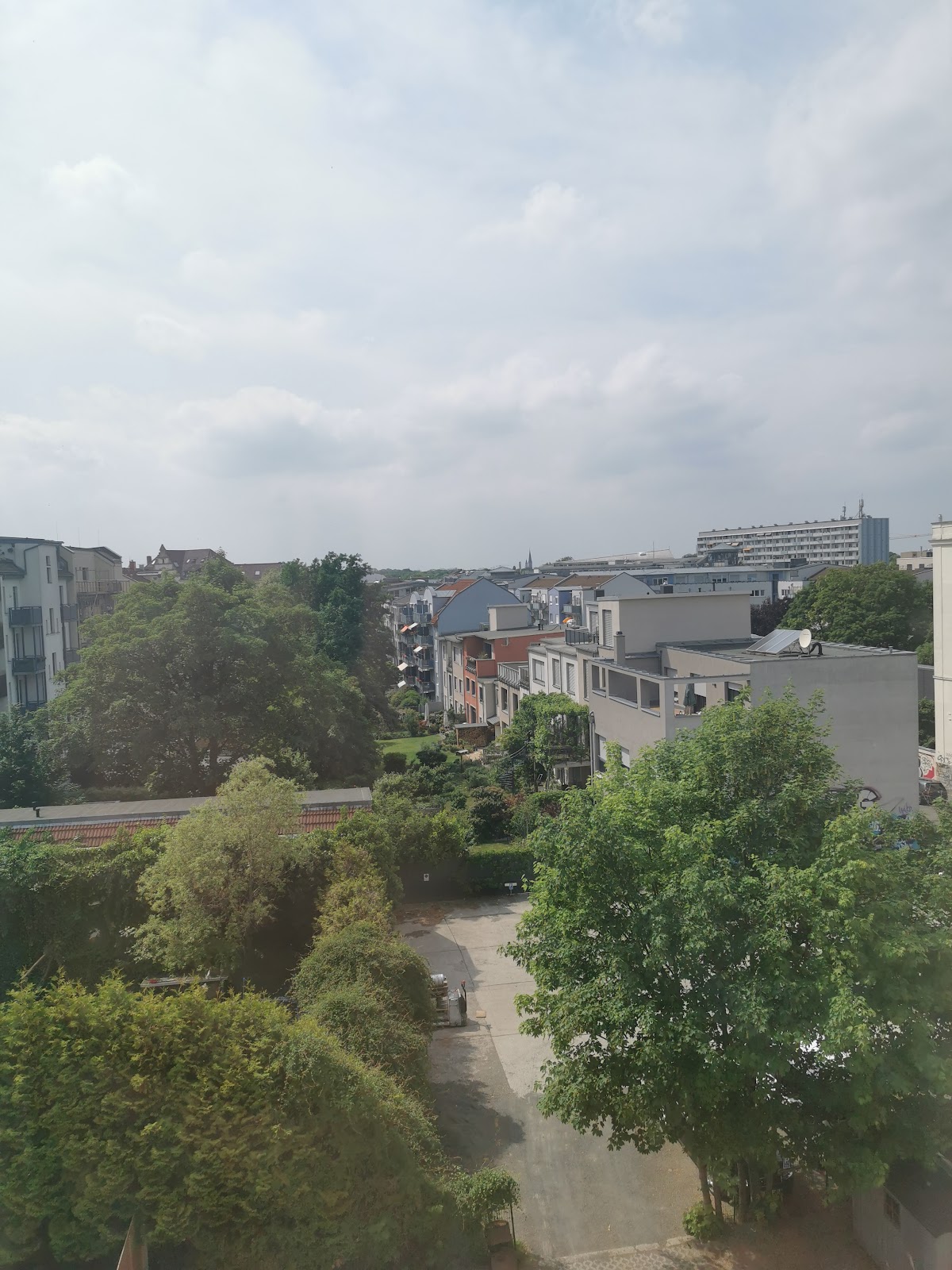 The building is a typical specimen of the Gruenderzeit period (midst of 19th century) and downstairs there is a restaurant called "Waldfrieden". Like the hostel itself, it's run by a group of young people who like building stuff up from scratch to be their own bosses. The food is simple and very good. You can eat local specialties as well as vegetarian food and sometimes they'll have artists playing live music. Both hostel and restaurant share a backyard where you can sit outside and have your meal or a drink (Biergarten). There is also a little playground for children.