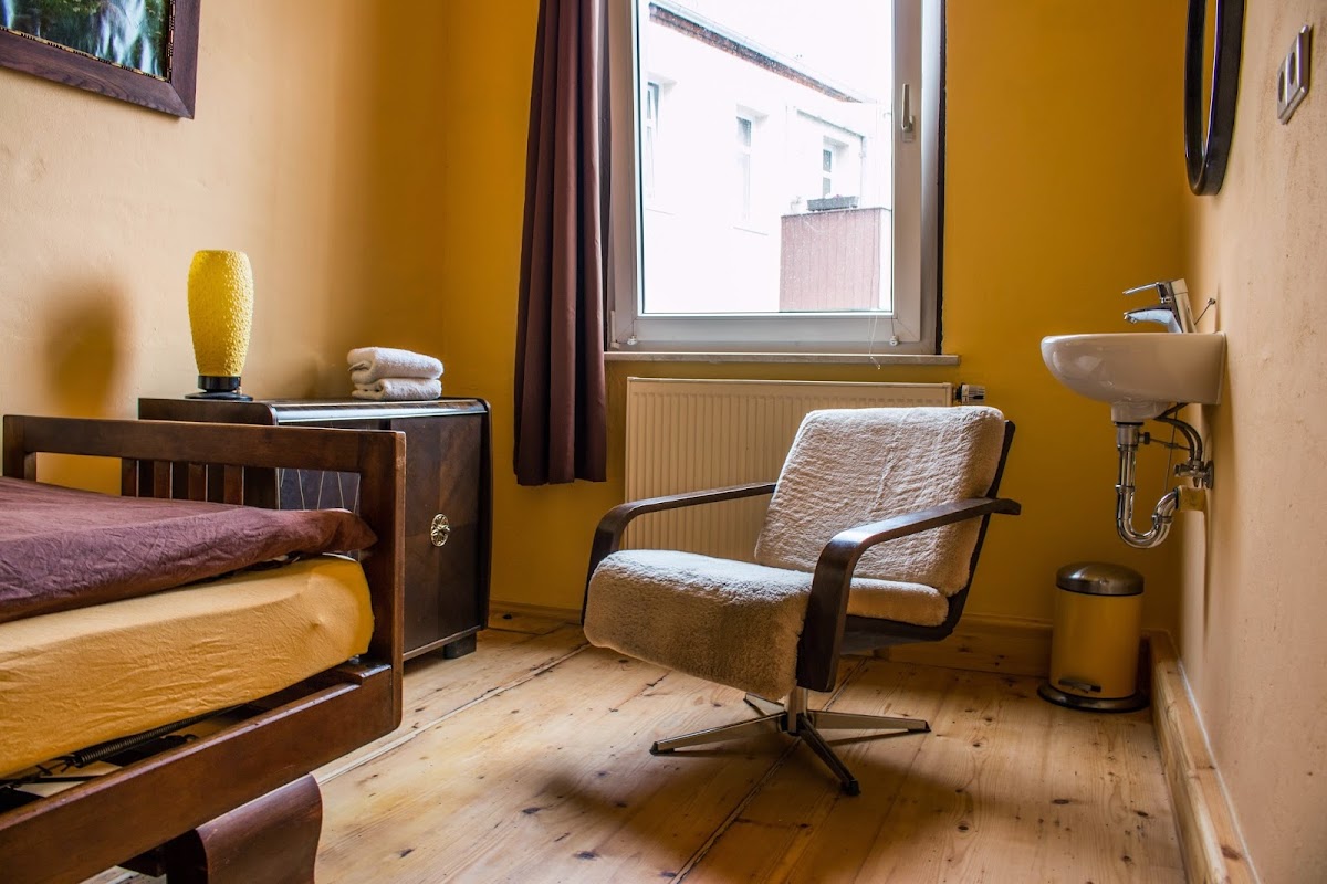 (Translated by Google) The hostel exudes a cozy 1960s charm, is wonderfully clean and the lounges are very cozy. The owner Olivia is incredibly nice and helpful. I will be happy to come back on my next visit to Leipzig