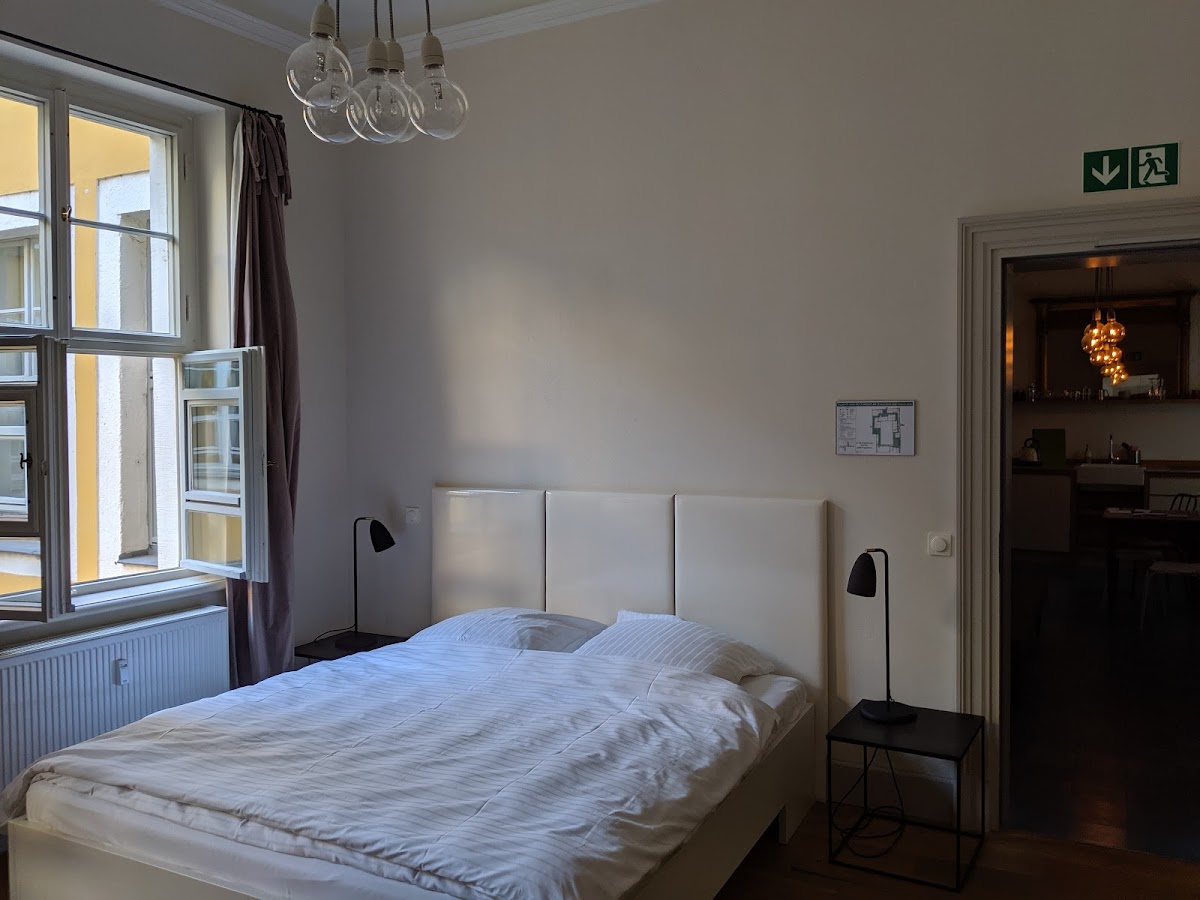 At first I barely noticed the sign on the street wall but then I realized Hotel Fregehaus has these 2 huge old time doors wide open. I was told the building dates back to the renaissance. The entrance and court yard look it. Very cool, kinda medieval. But the room was totally modern decor. Cozy quaint place right in the middle of Leipzig, a cool town on the up and up. I had to park my rental car in a nearby public lot for only $8 euros for 24 hrs. Awesome deal. Breakfast was $10 euros extra but tasty.
