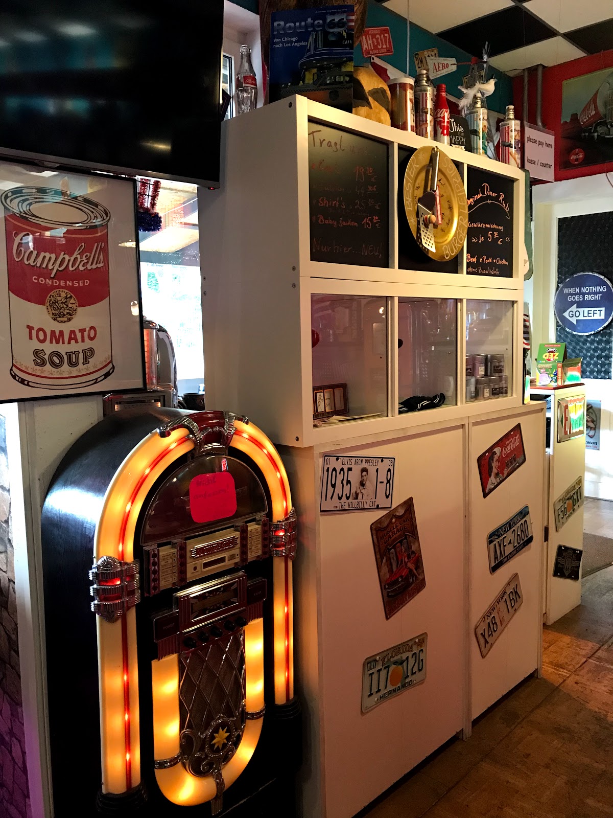 Quirky 50's inspired American diner aesthetic with (mostly) fried menu offerings. Minus one star for the bizarre, and slightly right-wing conservative, American memorabilia.