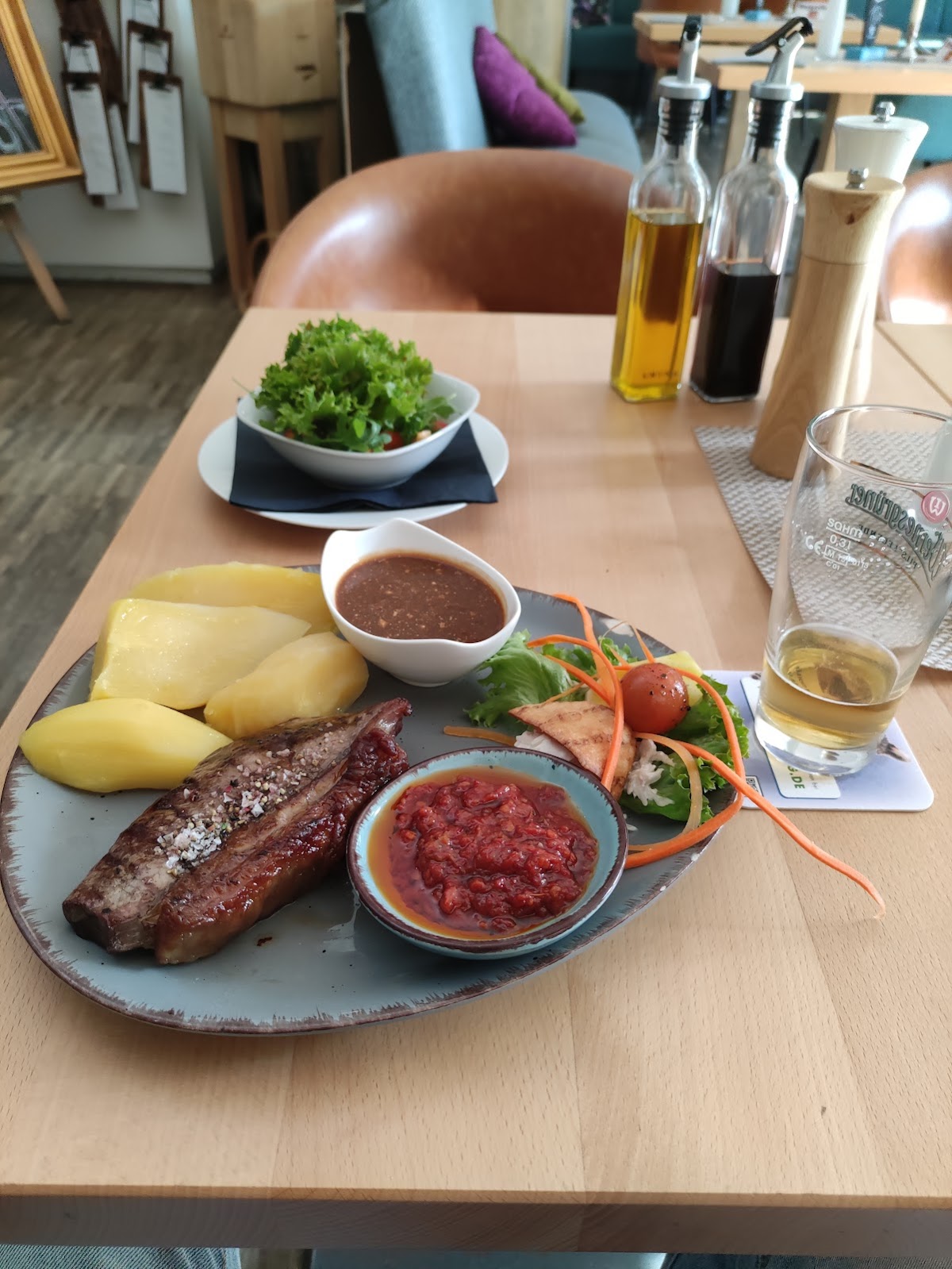 Dry aged steak cooked to perfection. More than affordable prices and supreme quality. Letterman's also being a bar makes the experience all encompassing. Quality bartender skills at good prices. Would recommend to anyone visiting Leibzig.