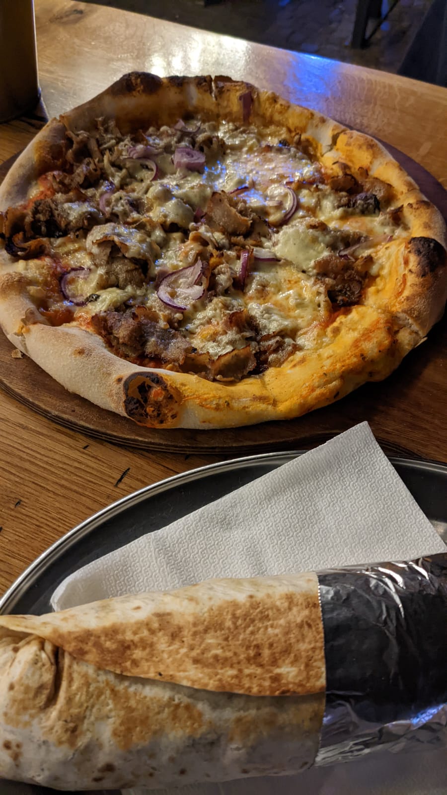 Really amazing pizza, and not just because of all the unhealthy toppings, but the taste of the dough which I think would be underestimated in a place that serves pasta, kebab, and pizza. Definitely recommend trying it out for yourself! Fast service and nice place to sit outside.
