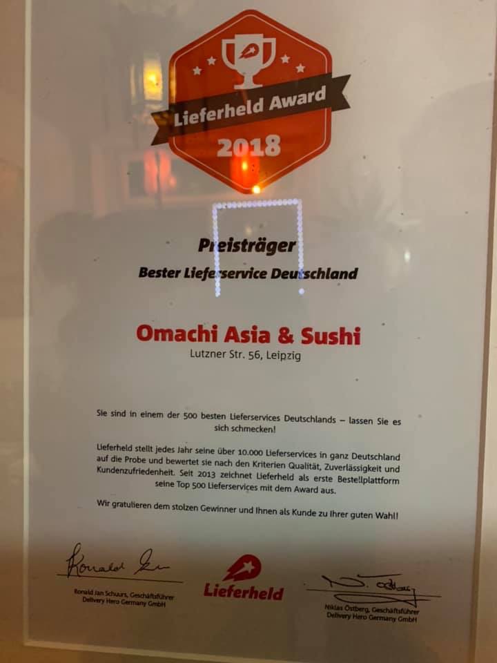 Bereits seit vielen Jahren bestelle ich bei Omachi. Die Gerichte, egal ob Sushi, Suppen oder Nudel-, bzw Reisgerichte, sind immer lecker und mit frischen Zutaten zubereitet.