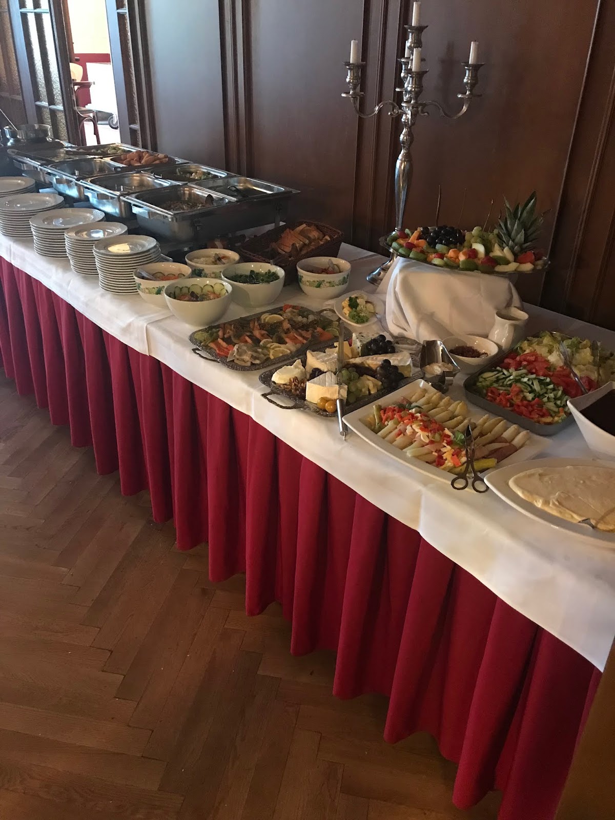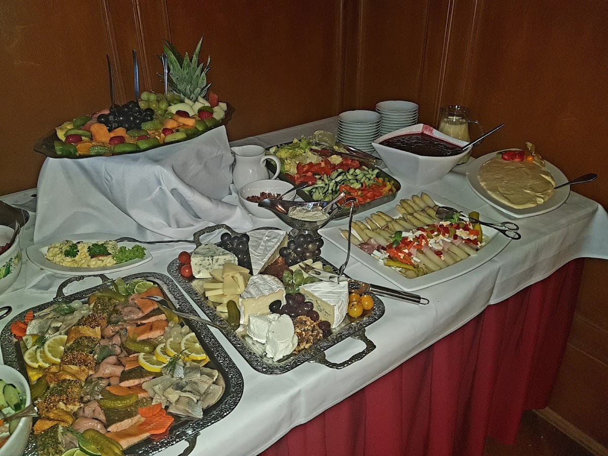 whether by e-mail, by phone or directly on site. Our wishes were followed exactly, such as the start of the coffee set, dinner, setting up the tables. We celebrated in the smaller room of the baroque hall. The space was more than enough for our 25 person celebration. The waitress / waitress was fully involved in the drinks service from the start and nobody had to wait long for his drink. We opted for the German buffet and many of our guests gave us positive feedback on the evening buffet. The warm buffet was also refilled. There is plenty of space for cars behind the park restaurant. Overall, we were very satisfied with the service, space, orientation in the preliminary discussion, food u0026 drinks, price.