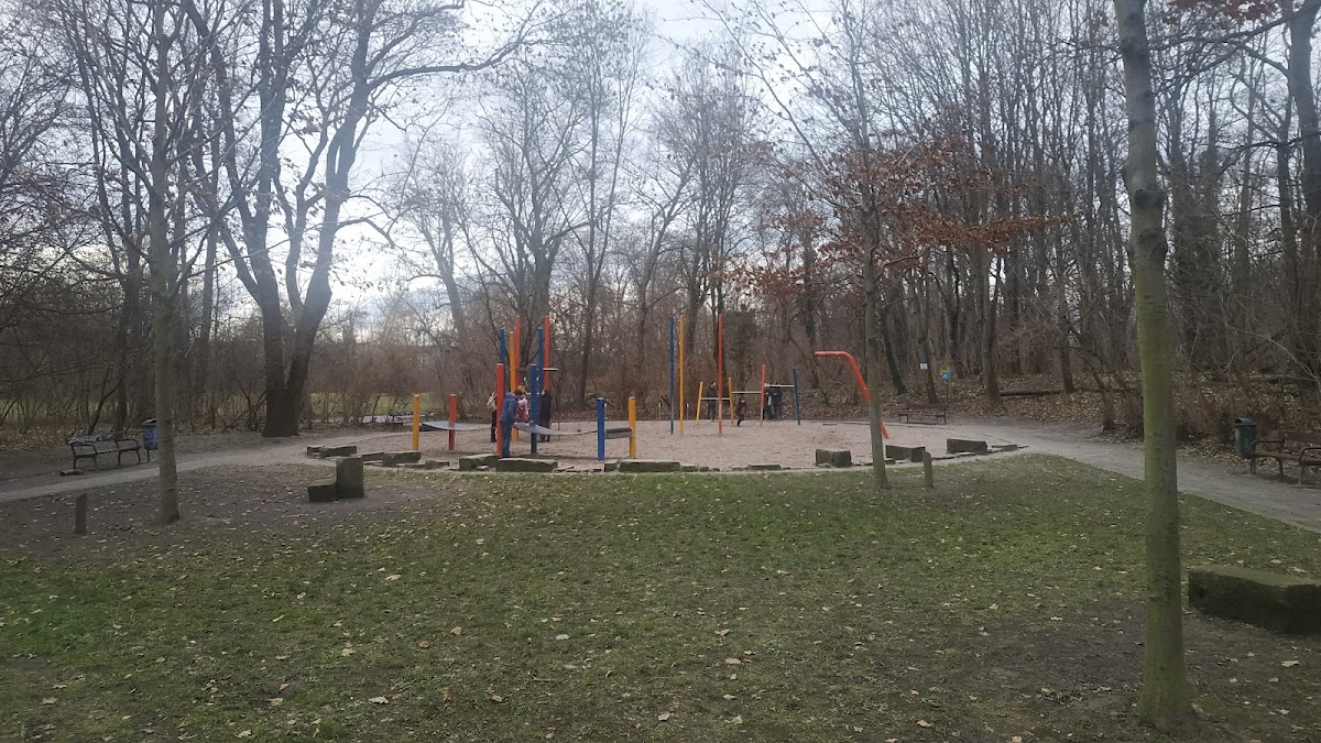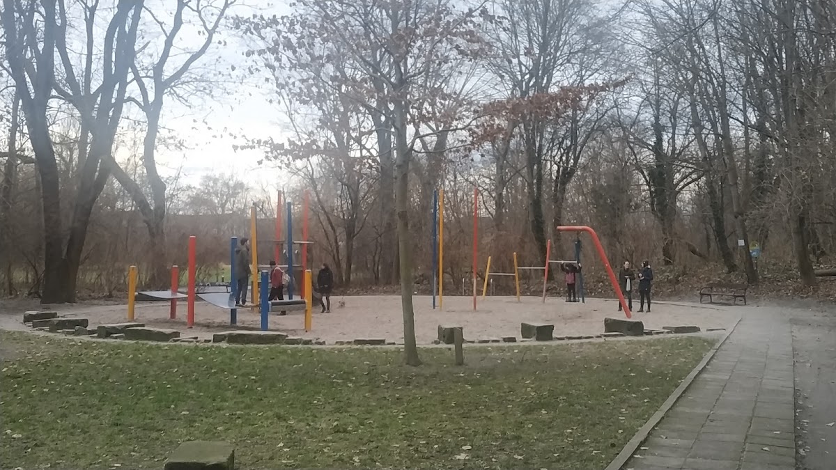 There is a swing, a slide, a jump-band as well as, I do not understand why, three single steel columns with which one can not do anything.
