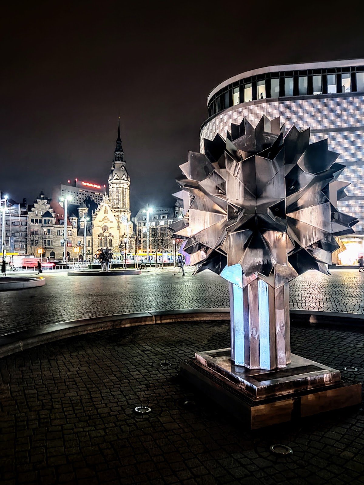 Diese Fontäne und pusteblumen befinden sich auf dem Richard-Wagner-Platz in Leipzig. Auch wenn der Platz nicht viel Grün bietet ist der Wunderschön bebaut.. die Fontänen und Skulpturen bieten drumrum Sitzplätze... Ich habe mein Foto ein bisschen bearbeitet und es sieht aus als wenn als wenn sich nachts ein Ungeheuer rumtreibt .. Gute Erholung..????????
