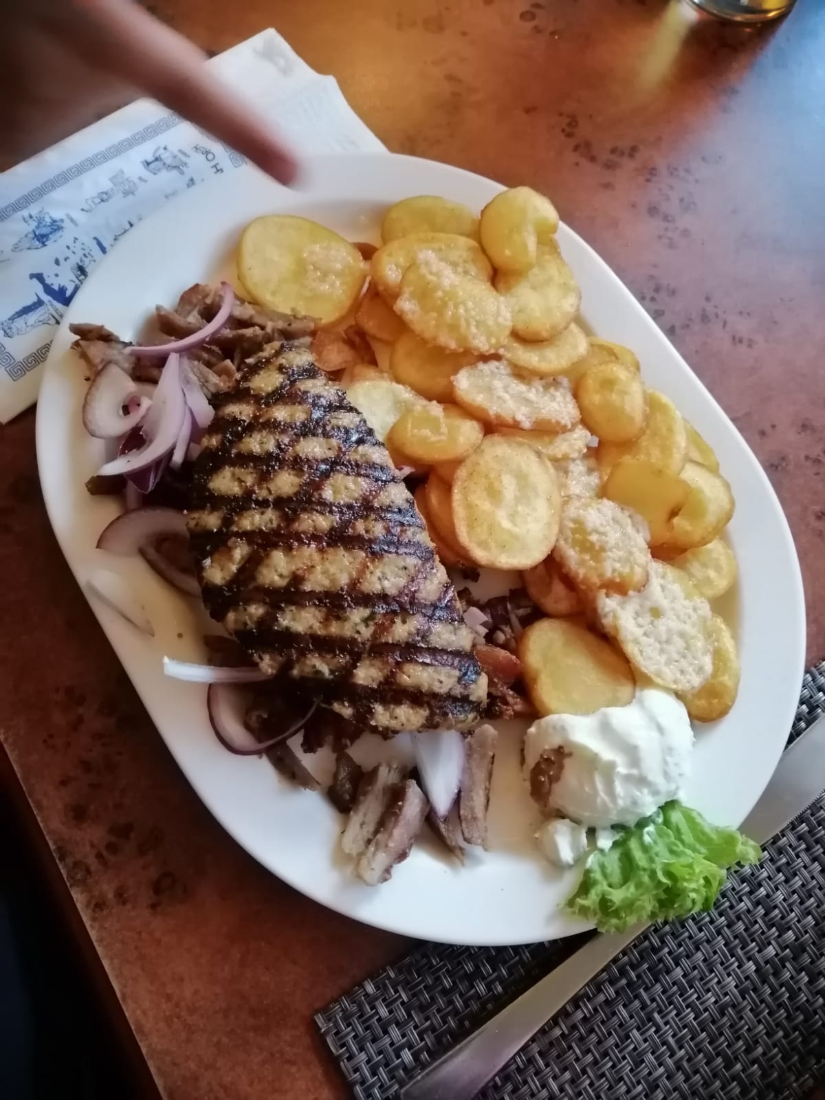 The food was ok, just what you expect from a Greek restaurant. But as a foreigner(we are from the Netherlands), the staf did not allow us to pay with EC card. "We only accept German cards". So my college had to walk to a cashmachine. After he was back I told the waiter before paying cash, we will try our dutch card, and after a lot of arguments he agreed. Ofcourse the card was working, like everywhere else in Germany. I think the owner wanted to earn some black money. The idiot!