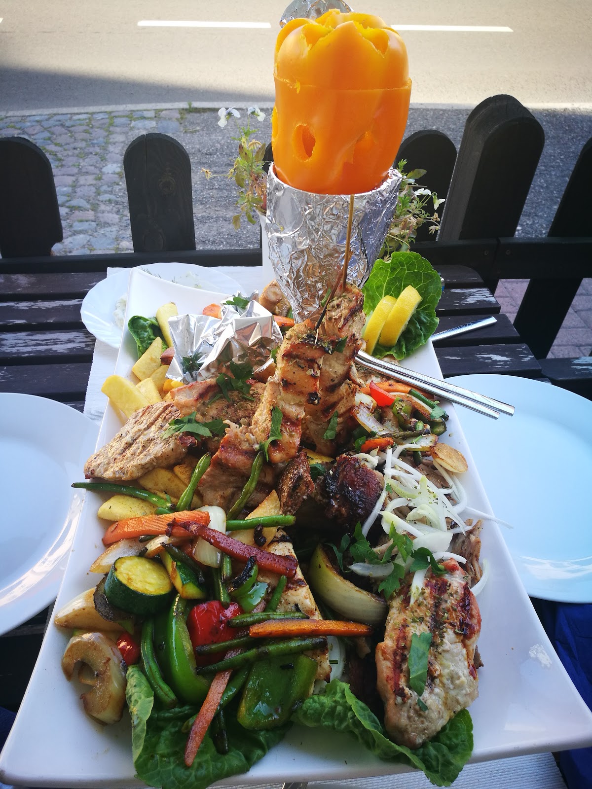 We got the menu and had the choice to choose the food ourselves or to be surprised by the staff with the plates we had put together. We chose the records and were not disappointed. The food was super tasty, fresh and more than sufficient. The staff was very friendly and fulfilled every request. I highly recommend the restaurant to anyone who wants to spend a great evening with delicious Greek food.