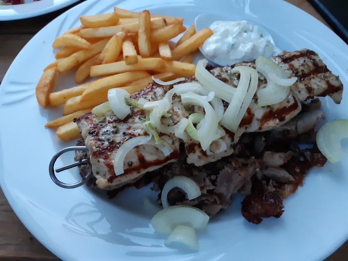 Nice place, waiter very helpful. food as ordered. mixed salad. baked potato. plenty of tzaziki. gyros crispy and juicy at the same time and plenty. complimentary Ouzo 5/5. Recommended