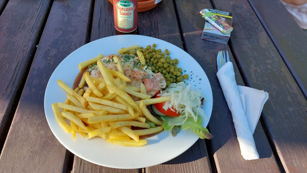 (Translated by Google) Self-service on a nice terrace. Good home cooking - no canning. We really cook here. The prices are absolutely fine.