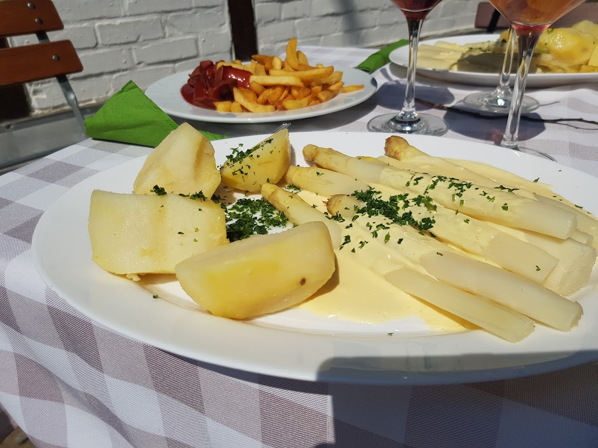 Wir Männer hatten Schnitzel mit Spargel, hat richtig lecker geschmeckt. Die Frauen hatten Spargel mit rohen Kartoffeln, als Ersatz kamen noch halbgefrorene Kroketten. Vielleicht einfach einen schlechten Tag gehabt.