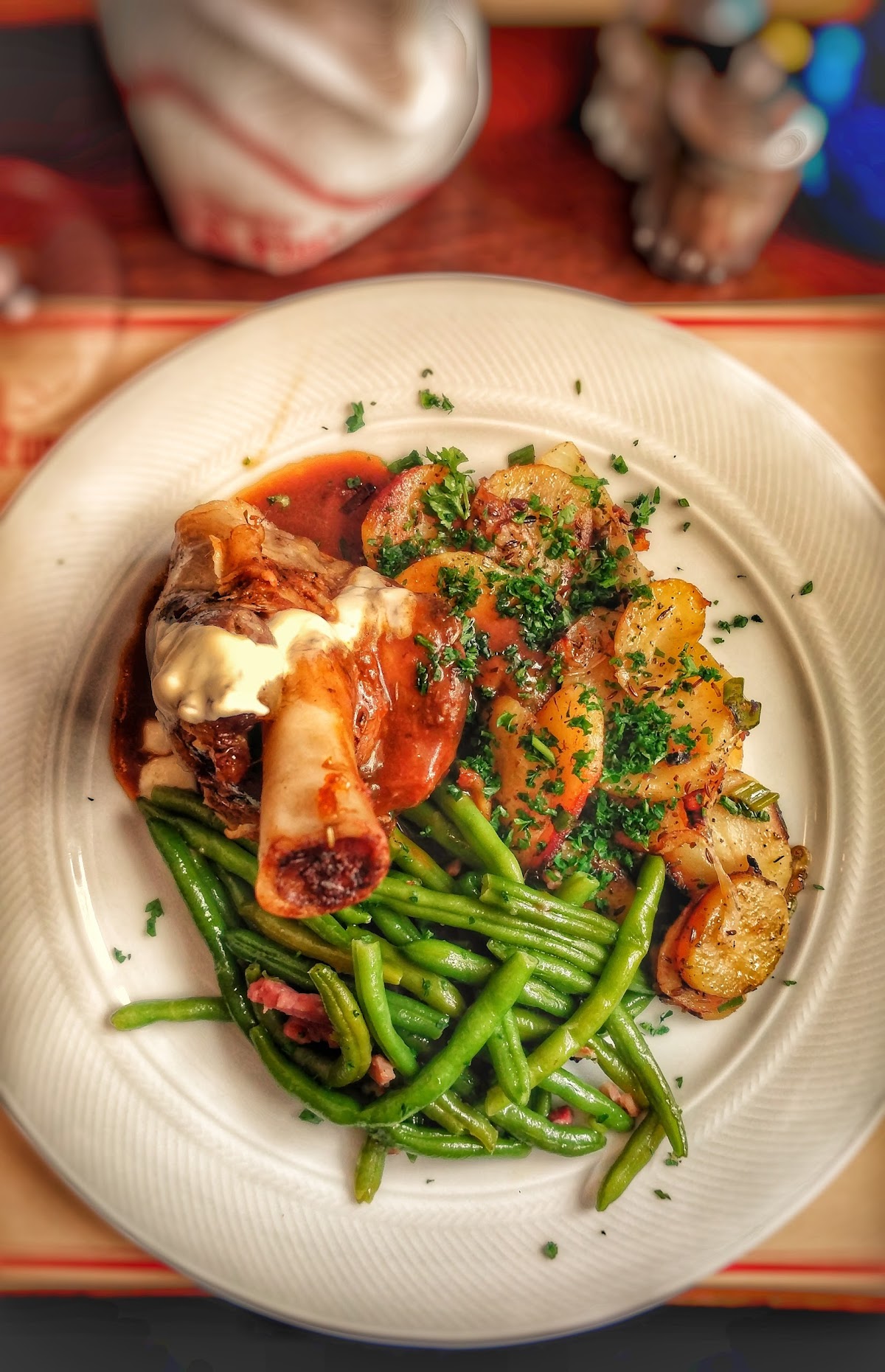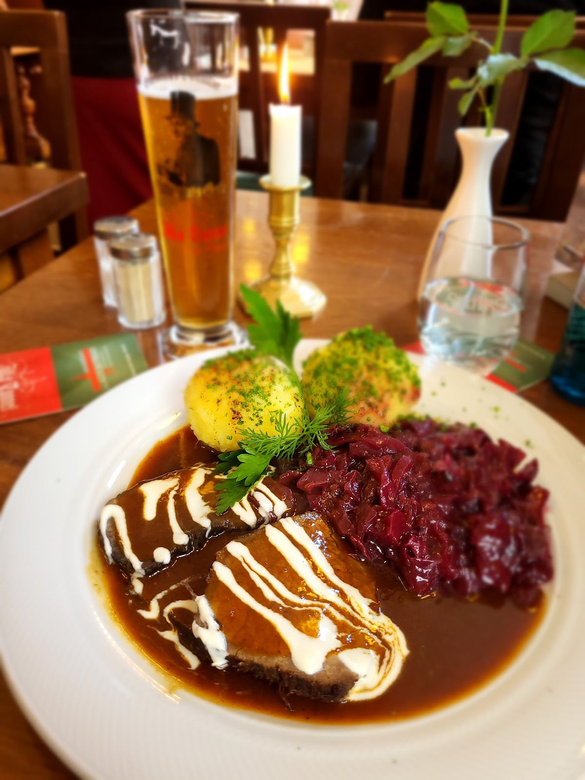 Loved the place, loved the delicious Lammhaxe (lamb's leg), the generous mixed salad, and all other dishes I tried. Sadly the so-called Mövenpick ice cream isn't Mövenpick but Nestlé. Great friendly service