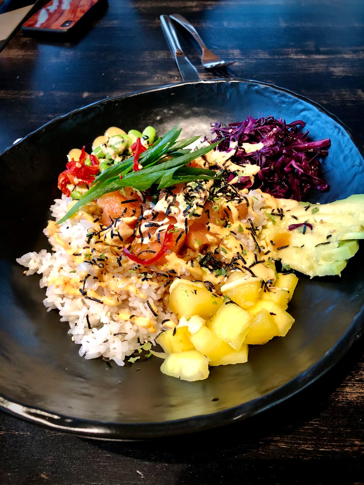 Pretty decent burger. The teriyaki sauce was great. The patty was a bit dry. The real winner of the dish are the fries. The fries themselves are great, and they are topped with a crème sauce, peppers, and coriander. They remind me of loaded jerk fries. Very delicious. The venue itself is nicely decorated. The only complaint I have here is the lack of noise insulation. The high ceilings allow the general noise to travel well throughout the entire restaurant. Another personal request would be more beer, perhaps a partnership with the local craft beer brewery Sudden Death would be cool.