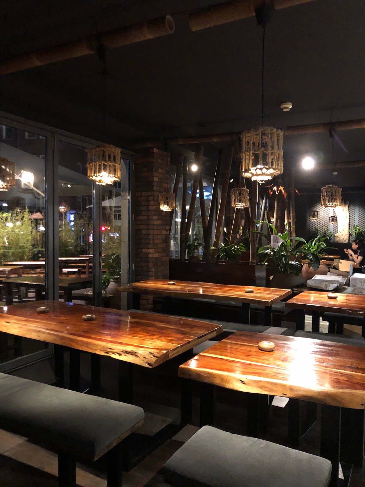 It has a very pleasant atmosphere. The bamboo details inside are both harmonious with the Asian culture and create a spacious environment.