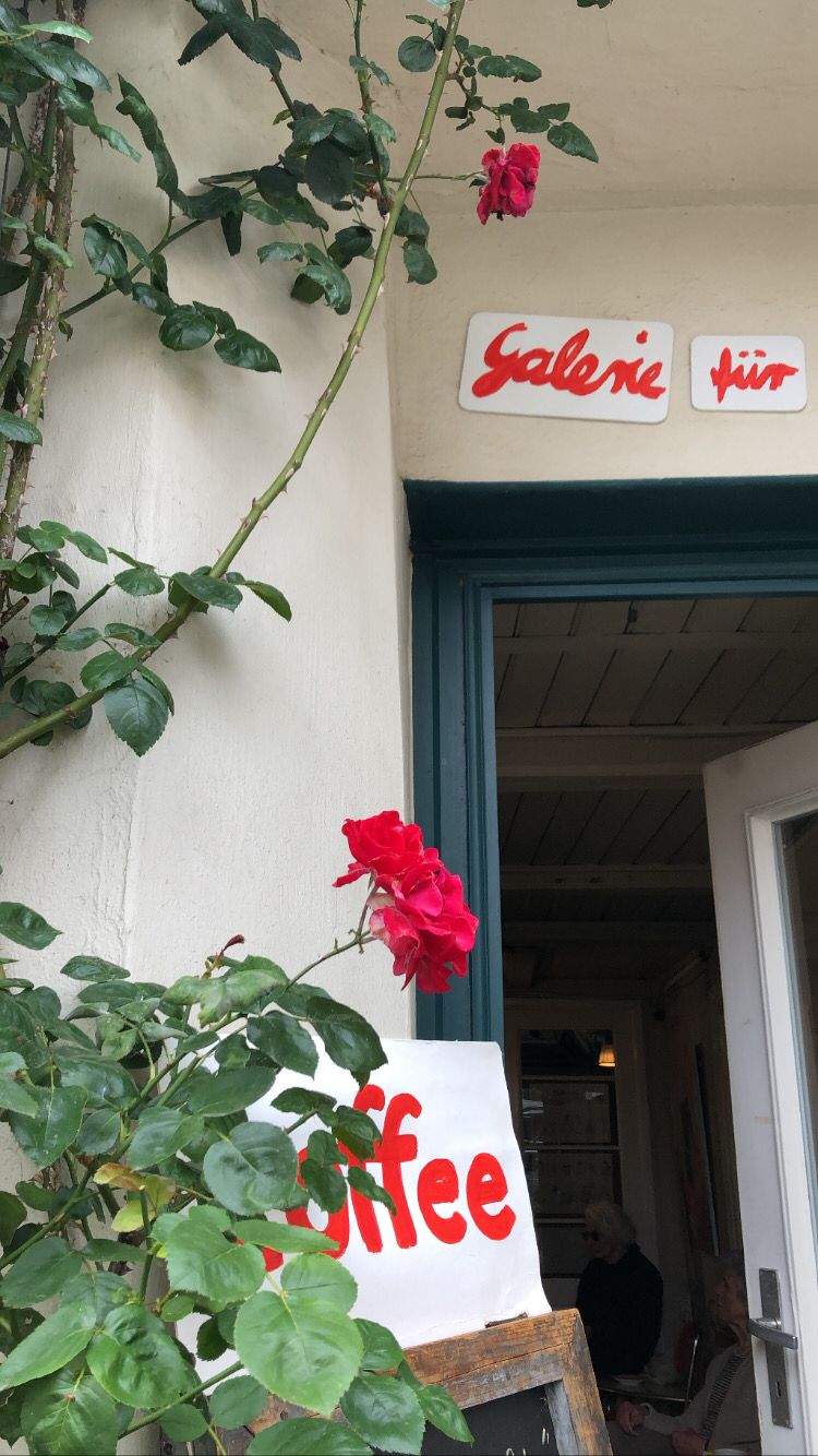 Nette Gegend mit vielen Rosen und Stockrosen; und dazu noch 'nen Kaffee. Lübecks Altstadt hat echt was zu bieten.