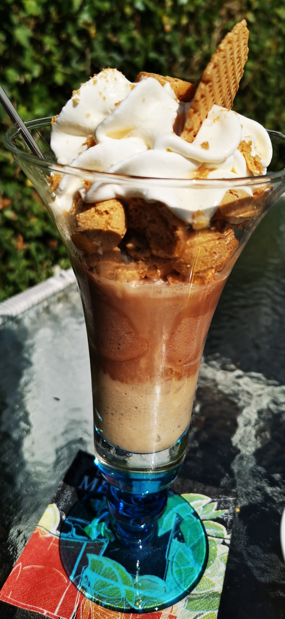 16.04.22 Ein Garten voller Sonne ☀️☀️ Der Eisbecher und Milchkaffee kamen schnell an den Tisch und waren sehr lecker????