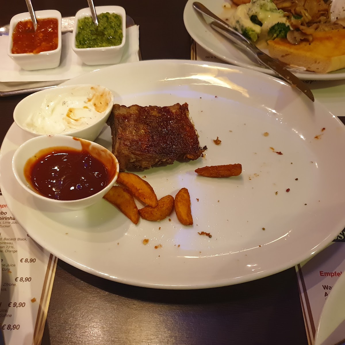 One of the best steak houses in town. The service is very good, friendly and they do what they can to give you a pleasant stay. The food is real good and served in time. Great overall experience and nothing to complain. In the summer months try to get a seat in the Biergarten. Awesome atmosphere there. Also you should try the Hacienda Plate.