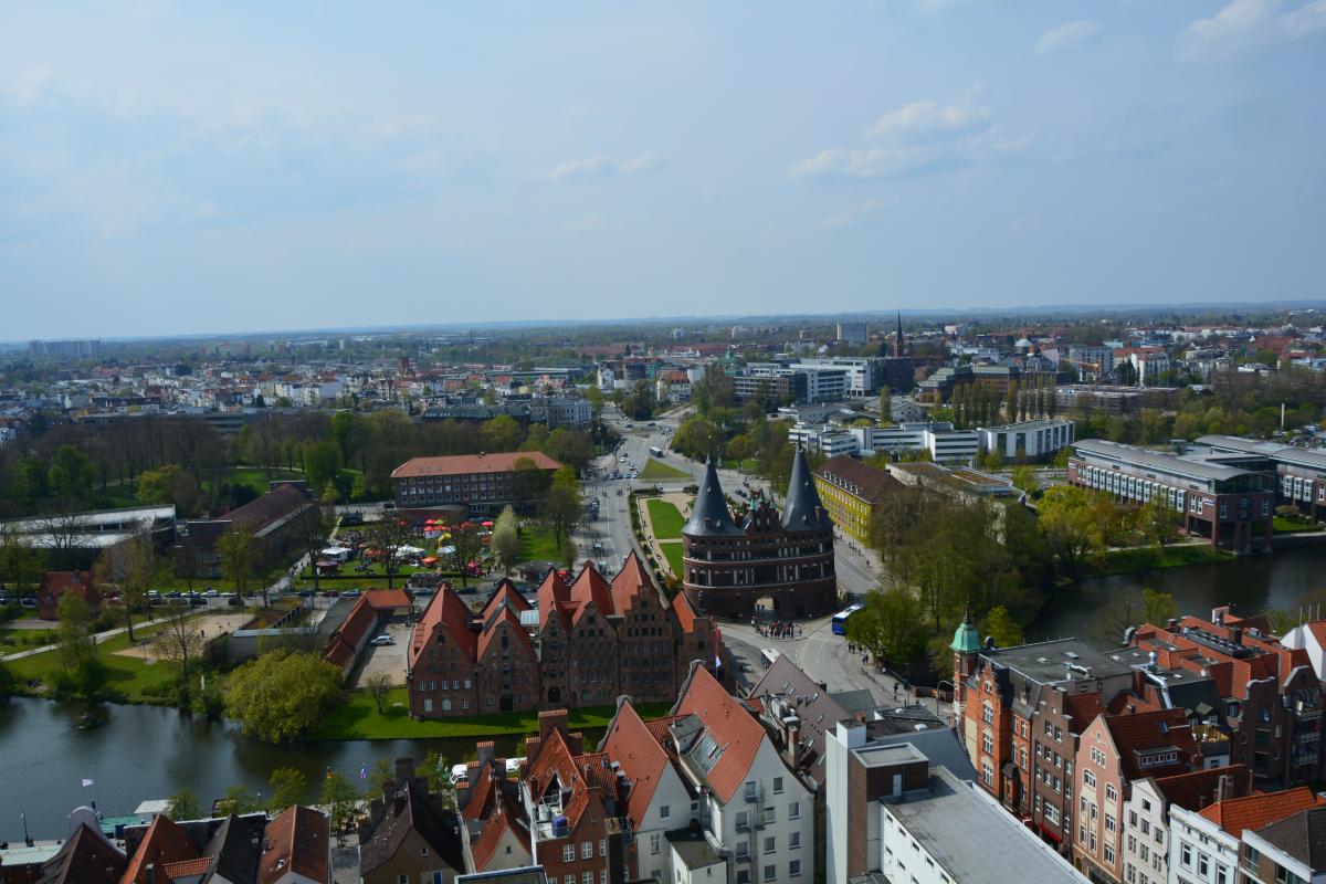(Translated by Google) The first time we take the elevator with pleasure))) - usually a long walk))) ... and there is sooooooo wind !!!! Well, anyway, the photos are cool, because the sky was almost blue))) Lubeck is clearly visible from all sides !!! Downstairs there is a toilet, not bad enough, or rather, even very cultural and modern. We did not regret the money and time spent, very lucky with the weather and the sun! The service is friendly and understandable even without knowledge of the language!