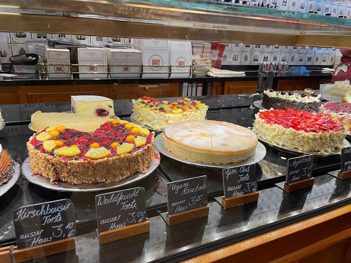 Sat outside. The staff was really nice. The cake was also good. I got the marcipantorte and some coffee. There was a lot of smokers why we had to leave having three small kids.