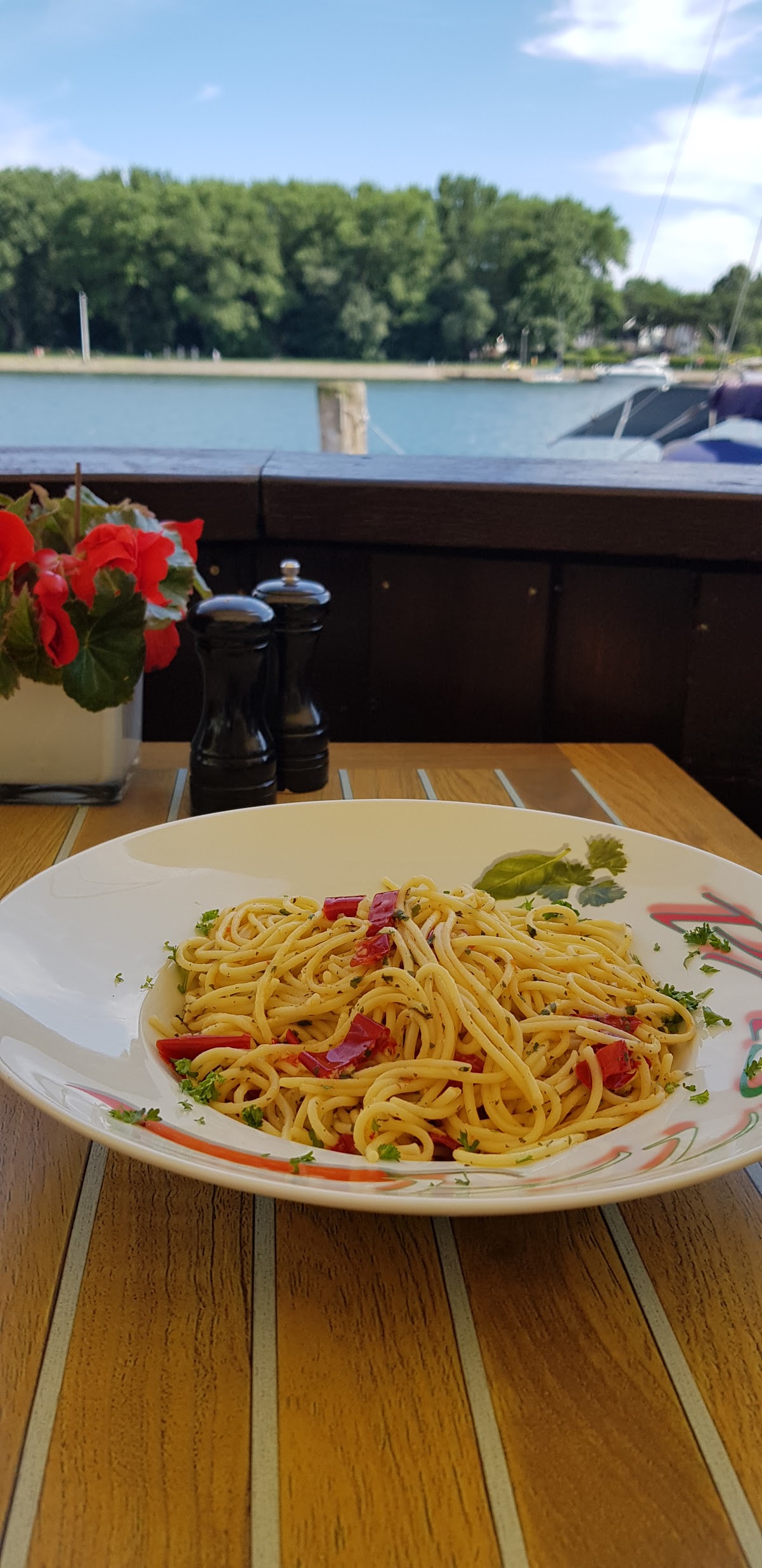 Amazing location, one of the best spaghetti Aglio oli I ever had, highly recommended.