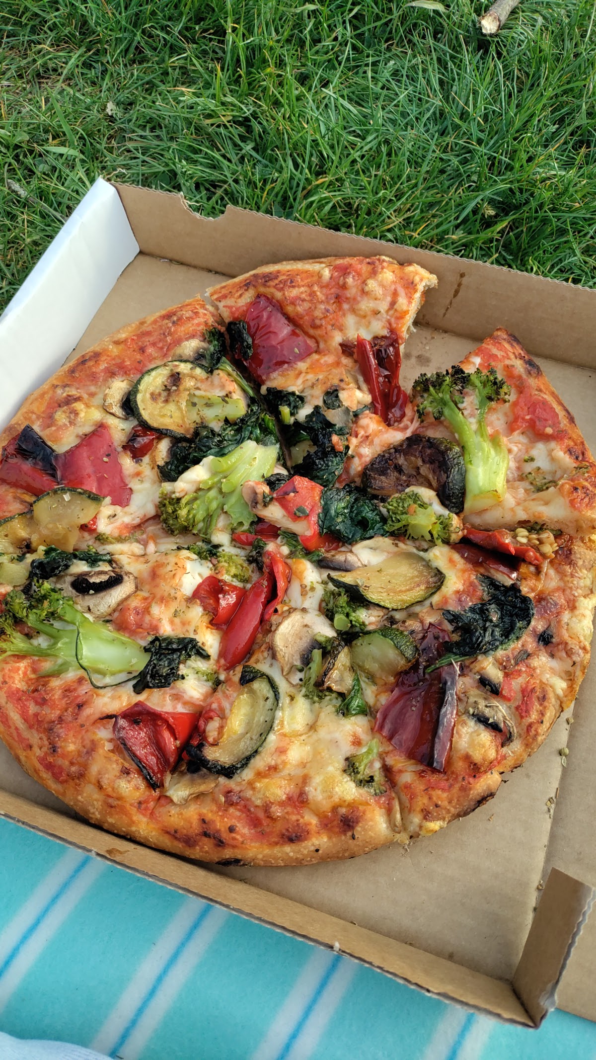 Ordered pizza for take away. Smaller than expected. The dough was thick but good chewiness and flavor. Good fresh veggies on the pizza.