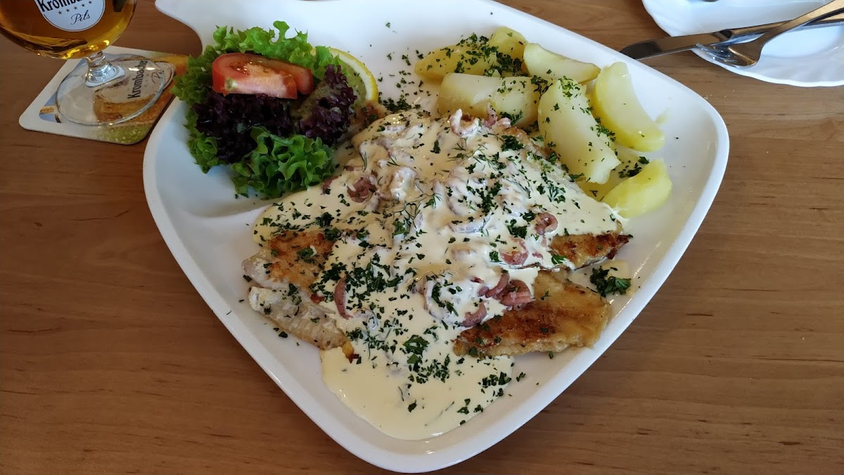 The food was delicious. The behave of the owner made us upset as he was not much welcoming and little rude????. But the lady was very polite and sober. For the halal eater, please mention not to add bacon slice in the pommes. As we were not aware of german cuisine, we had to leave fish dish because of the pommes.????????