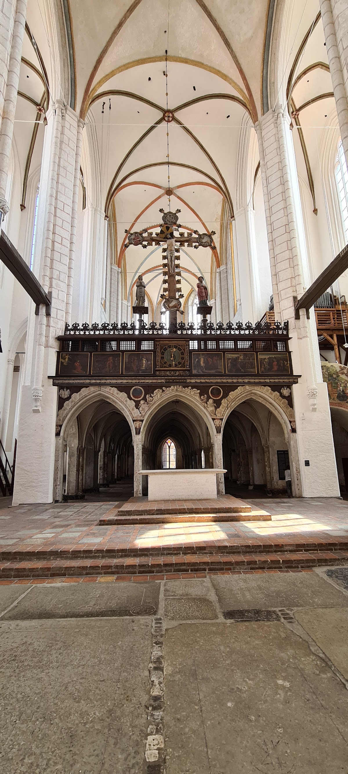 (Translated by Google) The only surviving monastery church (Franciscan) in Lübeck. Erected around 1300. Interesting interior painting. Floor covered with tombstones. Lower and upper choir accessible. Monastery dissolved in 1530 during the Reformation. Desecrated by the troops of Napoleon (1803-13). Tintoretto's "Awakening of Lazarus" is on the wall behind the cash register. Various, also more modern works of art, e.g. B. Sculpture depicting Käthe Kollwitz.