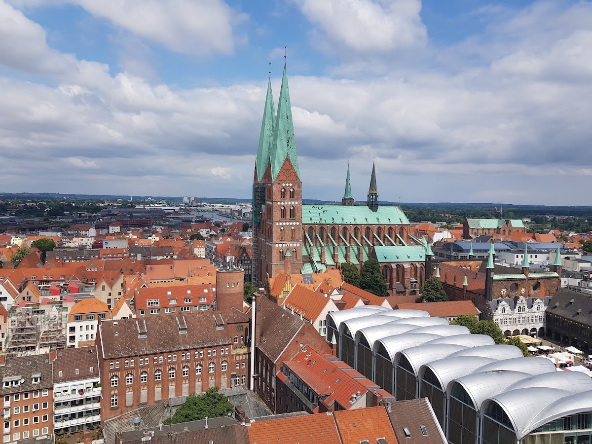 Großartiger Ausblick auf Lübeck. Ein Lift fährt die Besucher rauf zur Aussichtsplattform; es sind nur wenige Stufen zu laufen.