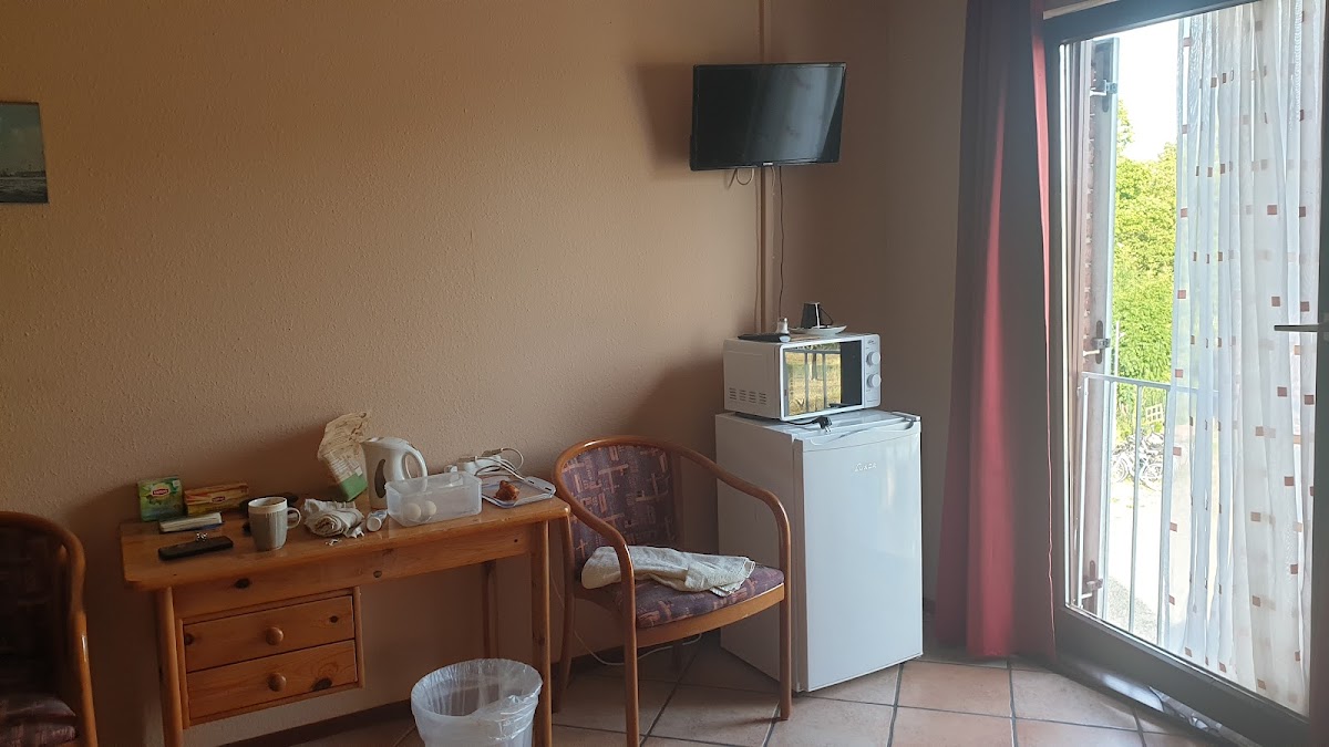 Hotel tylko i wyłącznie na jedną noc dłuższe pobyty nie wskazane.Tak naprawdę jedyny plus jaki mogę dodać jest za lodówkę i mikrofalówkę na wyposażeniu pokoju. Budynek wymaga ogromnego dofinansowania. Pokoje pozostały w stylistyce lat 80 tych no i oczywiście meble też z tamtego okresu - zalatuje starocią. Pościel i materace najniższej jakości , telewizor mniejszy od ekranu mojego laptopa ,wifi ciągle zacinające się i nie stabilne. Można mieć obawy żeby wejść pod prysznic ponieważ dużo zamalowanego grzyba w rogach. Śniadania bardzo, bardzo skromne ,nawet jajka są wydzielone - jedno jajko na osobę. Pani owszem miła a na pytanie czy można dostać jajecznicę odpowiedziała że w Niemczech na śniadania nie ma jajecznicy. Proponuję właścicielom odwiedzić konkurencję i zacząć sukcesywnie robić remont każdego pokoju z osobna bo wydaje mi się że hotel po mału tonie.