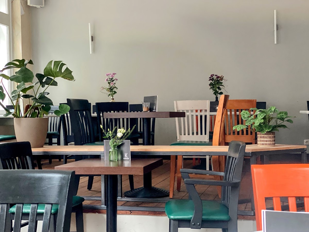 (Translated by Google) Inexpensive and good lunch, even on a Saturday. Employees with disabilities are also employed, very nice and friendly people. It tasted good and 7.90 EUR for a barberie duck leg with red cabbage and dumplings is cheap! The restaurant is cozy, modern and invites you to linger!