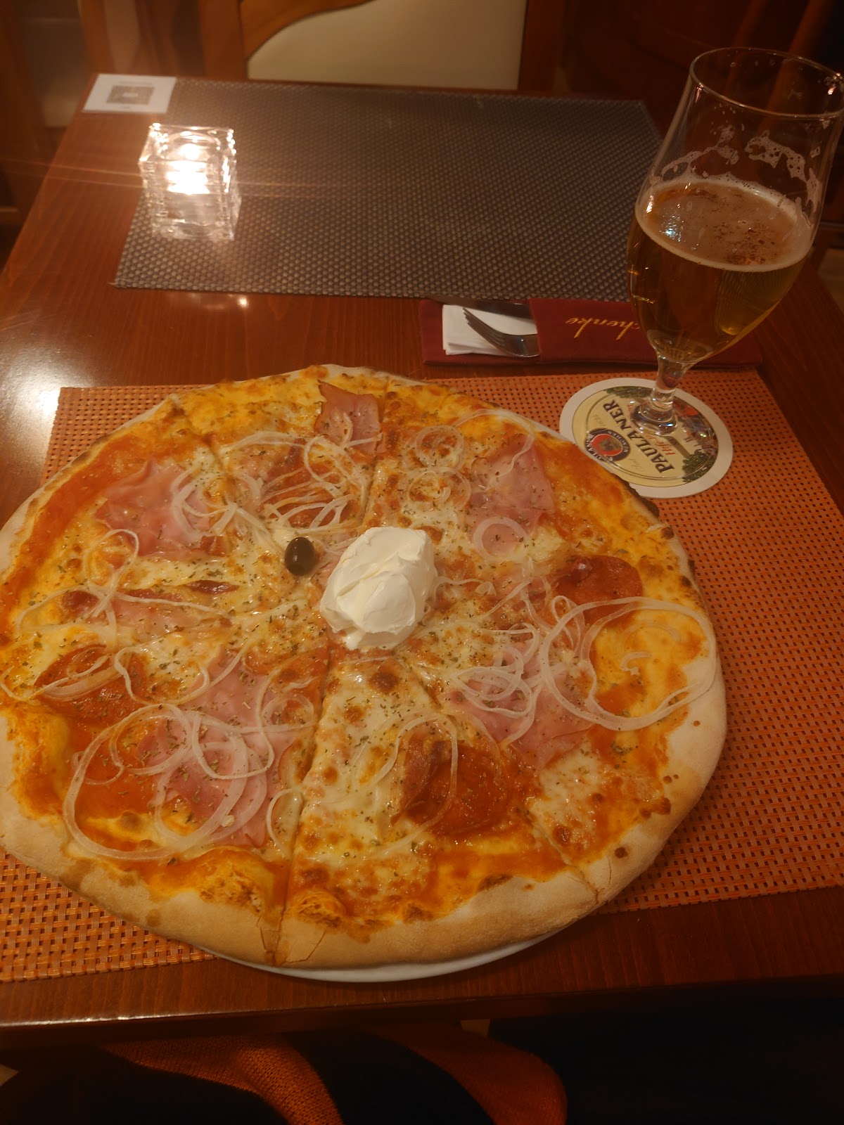 Very friendly staff, cozy place with authentic Balkan music all the time, and the pizza was great tasting. Sadly can't choose the size. On the picture is shown the default large, which was a bit too much for us two. Too bad this place doesn't have a real garden as it is directly on the street.