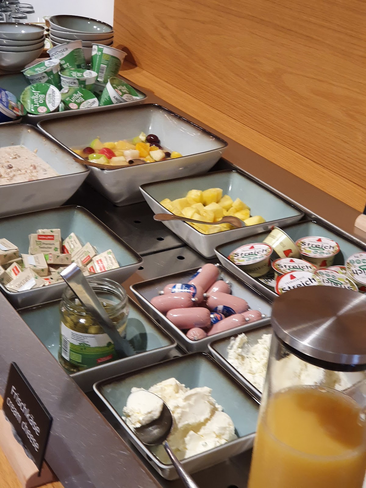 The room was functional and comfortable. The traditional Bavarian breakfast was terrific, and their dining area, and patio space, were very pleasant. The hotel is a block away from a noisy-at-night part of town, which may be either a pro or con. Although that kind of nightlife isn't my thing, it also wasn't much of a bother. Excellent proximity to the train station and to the city center. Friendly staff.