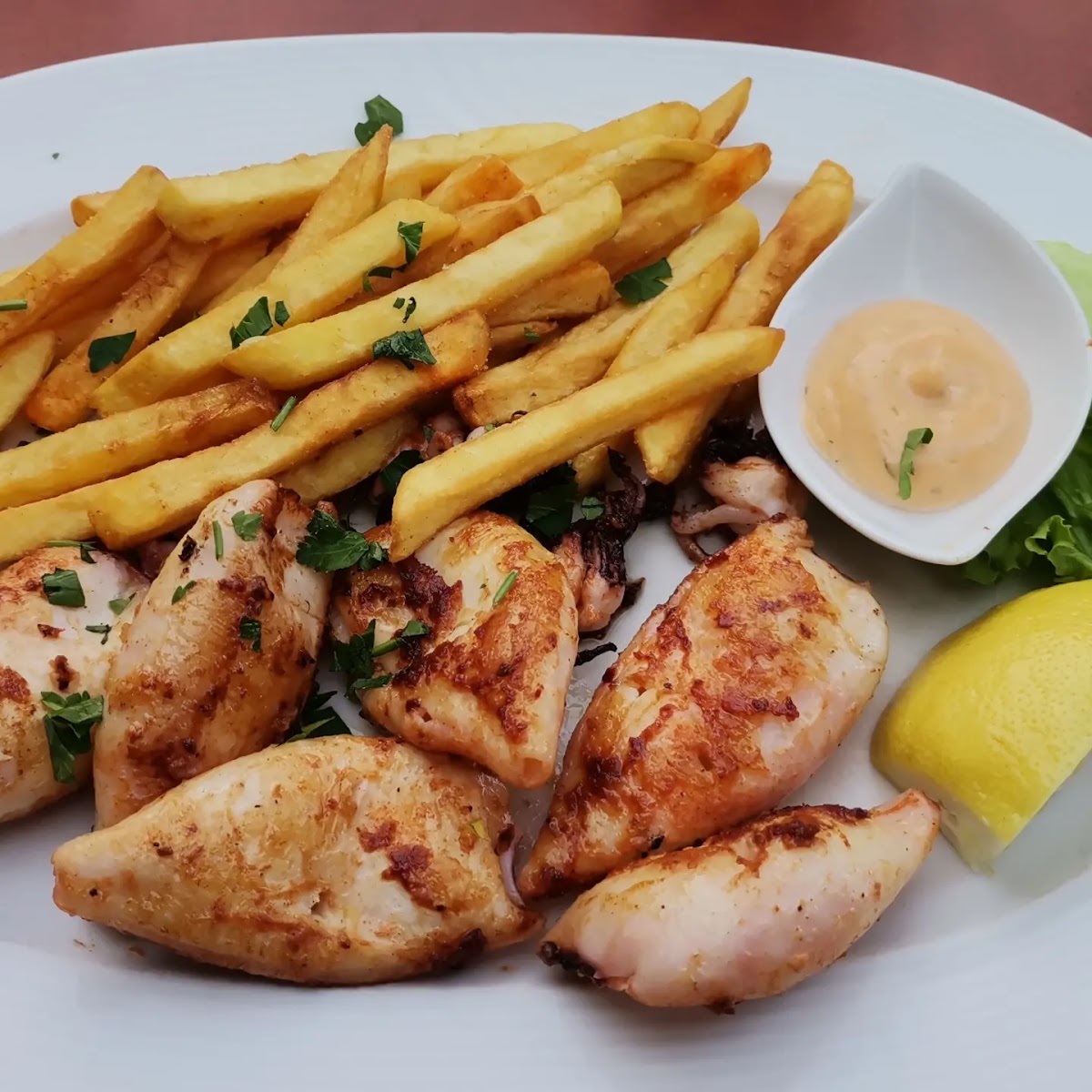 Maybe I'm biased, because the restaurant is just around the corner from our home, but the food there is super delicious. They have all sorts of sea food. I don't know what they do to baby calamari, but they end up beeing very tasty. Tomato t stole our son stomach :) He loved it first time and orders it every time we're visiting.