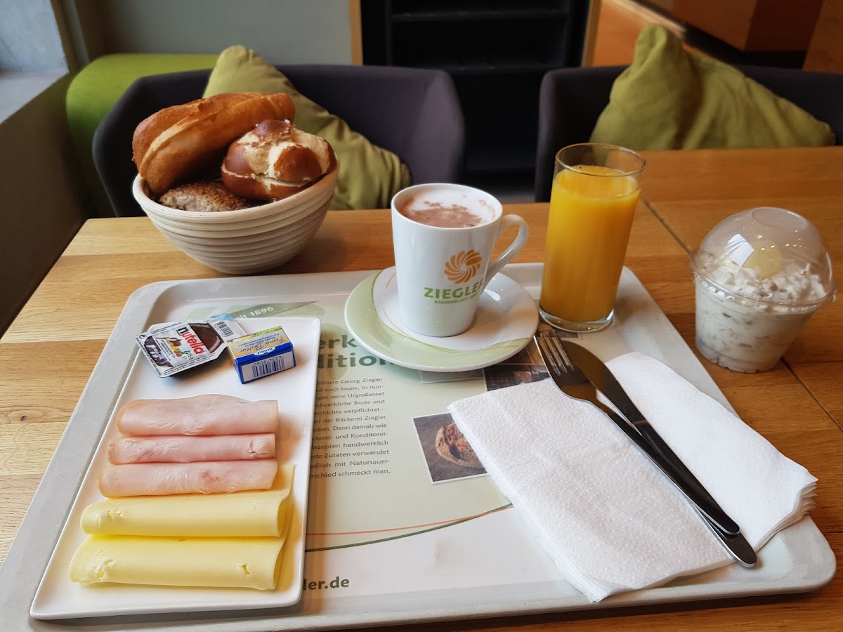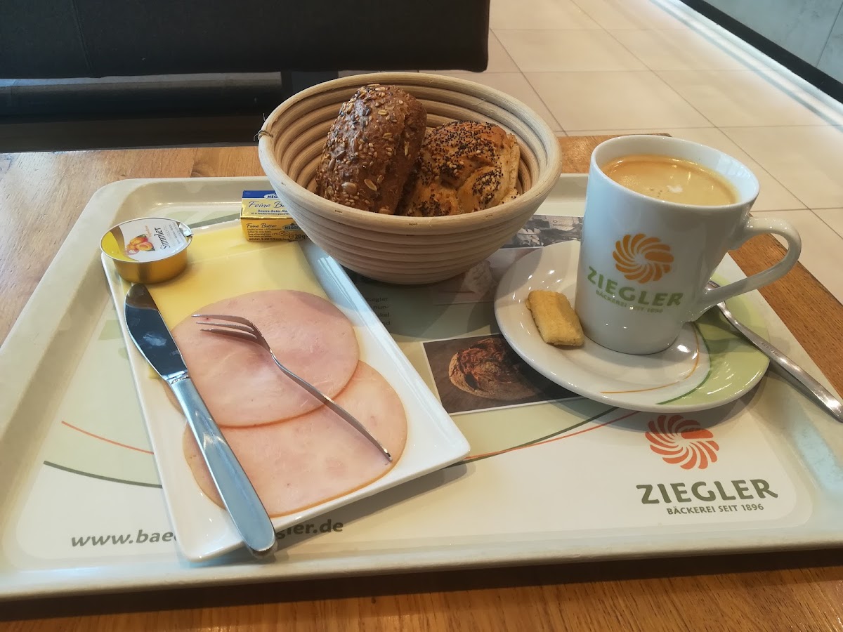 (Translated by Google) Bakery with café. As breakfast menu there 5 different breakfasts to choose from. I had the bakery breakfast for 3,65 € (without coffee). The rolls are very good - no baked dough pieces from Eastern Europe. The price performance ratio fits. Therefore 5 stars - please keep it up ...