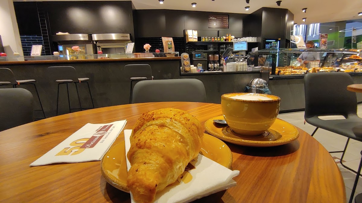 (Translated by Google) Bakery with a small cafe, not very cozy, rather functional. The quality of the baked goods is so-so, the warm Kaiserschmarrn is anything but fresh. The staff at least tried hard and friendly.
