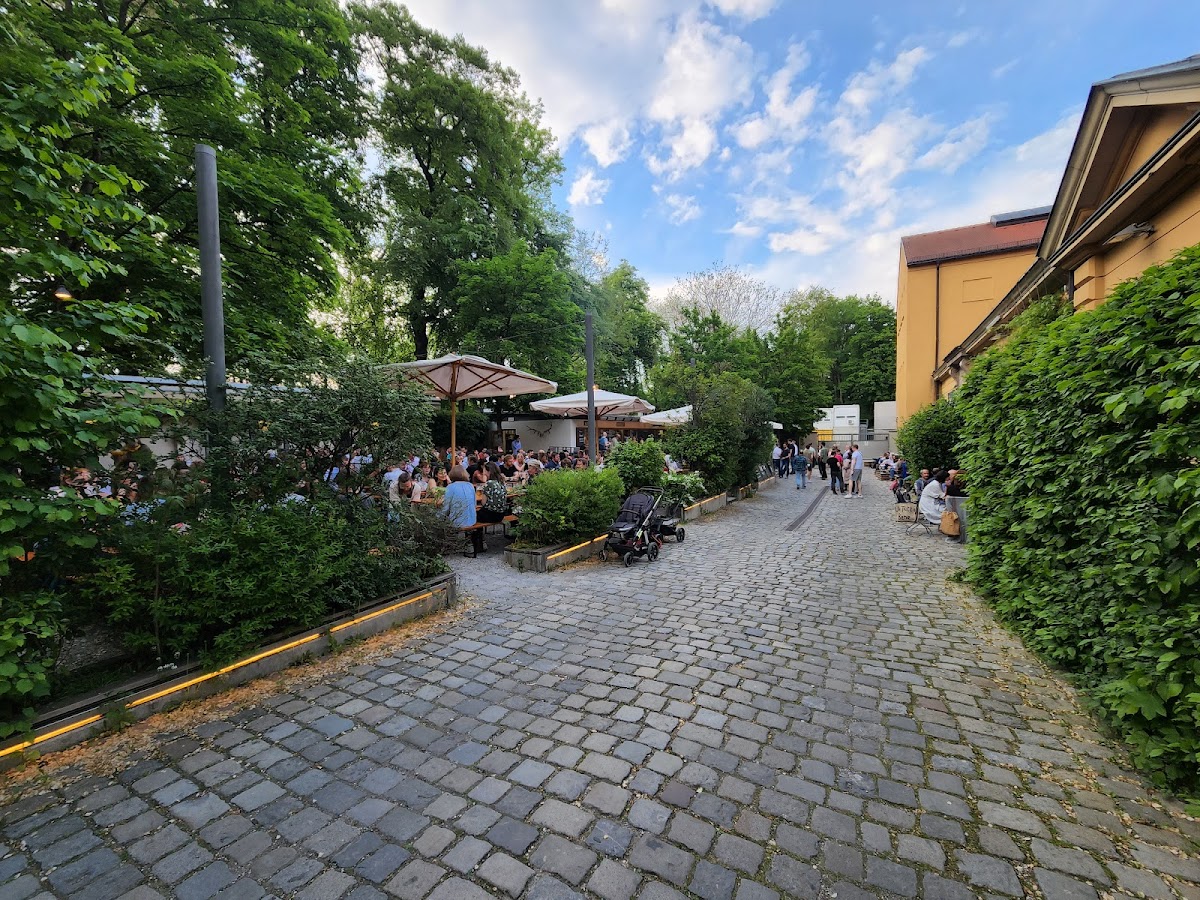 Love it .. good beer .. good Atmosphäre .. on the way to long walking rote ! They have a lot of concerts at the place .. it’s absolut insider tip for summer in München ! Don’t believe a review about higher costs .. it’s standard Munich prices .. place is not big but cosy .. food is good .. kitchen is clean .u can see inside kitchen .. maybe not best for family with kids but great for a young couple..serving starts after later afternoon.. lovely!