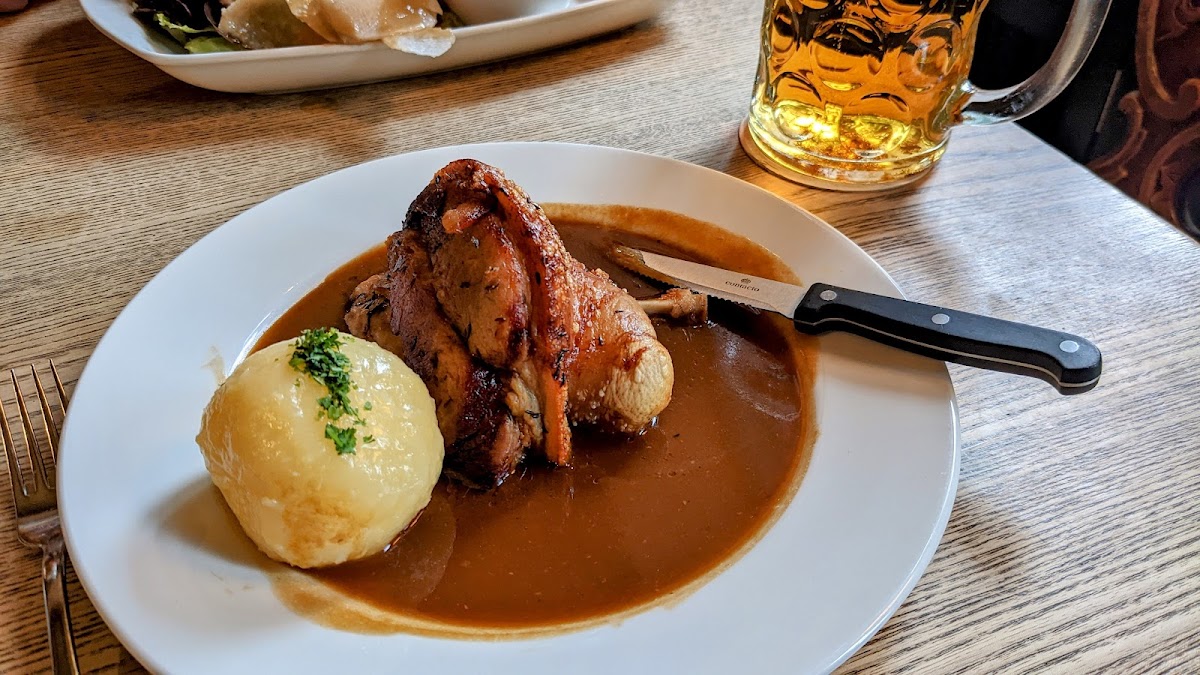 Excellent place for German food in a biergarten! Crispy pork belly and the salads are good! And the biers are great too! Hint: go for the self service area to order your food and bier! You can get half litre beer vs 1 litre ones! Definitely a must visit!