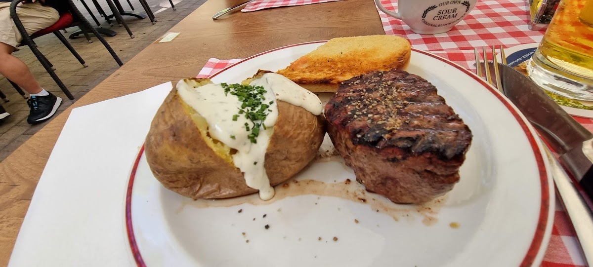Menu a bit too simple for my taste. Backed potato is not my thing, it'stoo dry. However this time everything went smooth and the waiter brought as extra sour cream