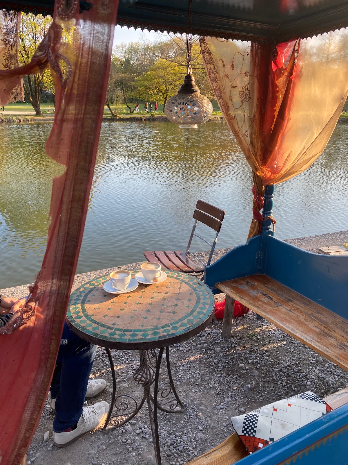 Beautiful outdoor café located in a peaceful and serene area next to the lake. Various food and drinks available with live music!