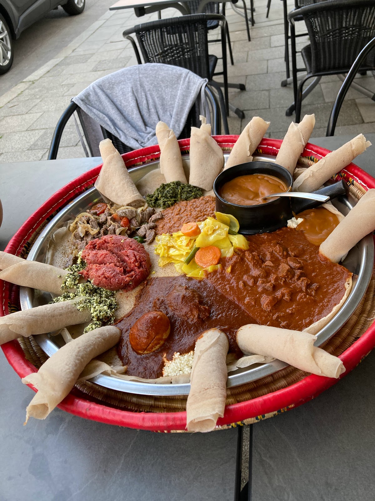 Absolutely delicious Ethiopian food with really big portion sizes! Would highly recommend going on an empty stomach with a big group as the big platters have enough food to share between 4 people approximately. We had a non-vegetarian platter shared between 4 people and every item was cooked to perfection and just heavenly! Even after sharing, some food was leftover which the staff happily agreed to pack for us and take home!