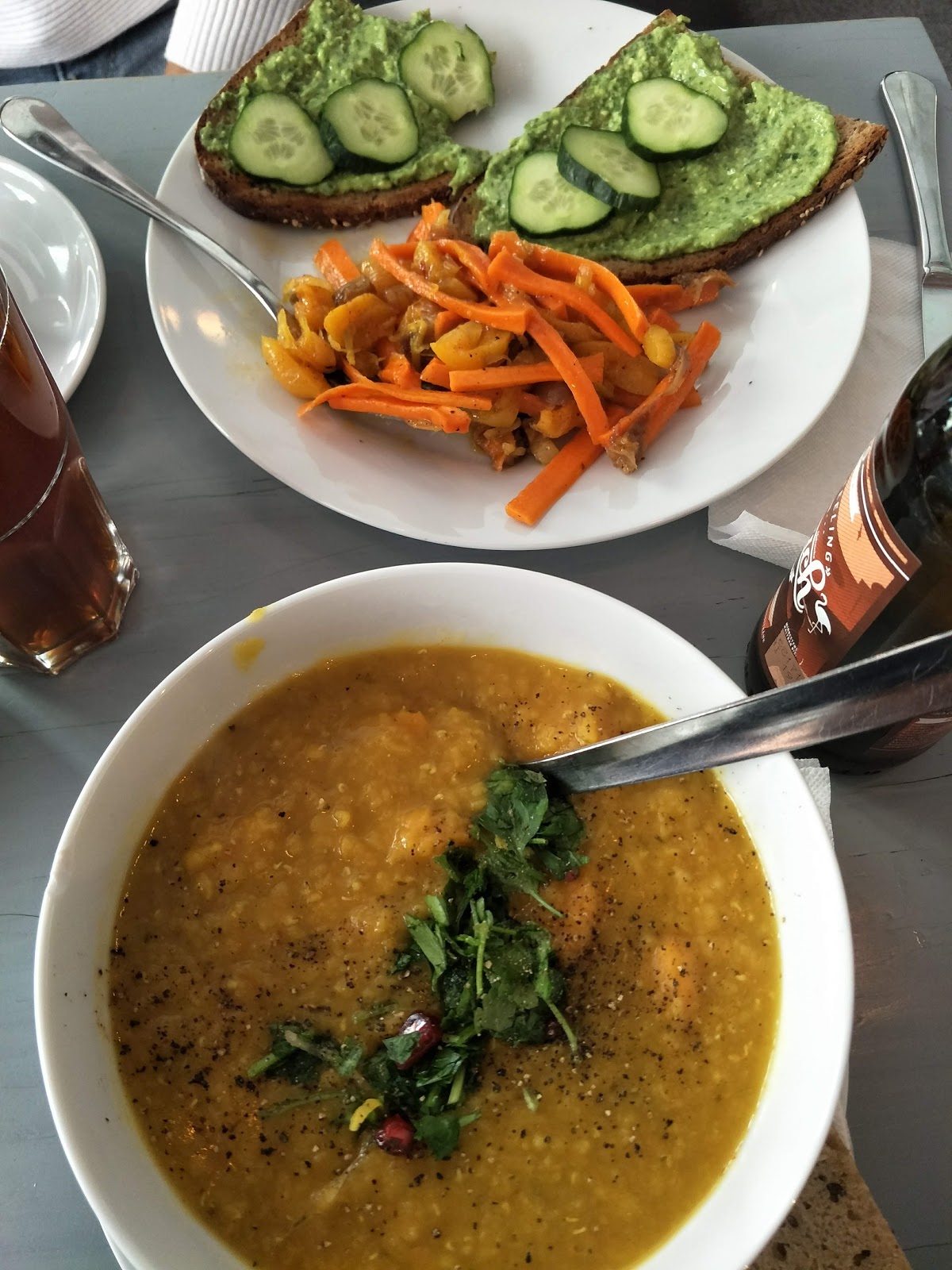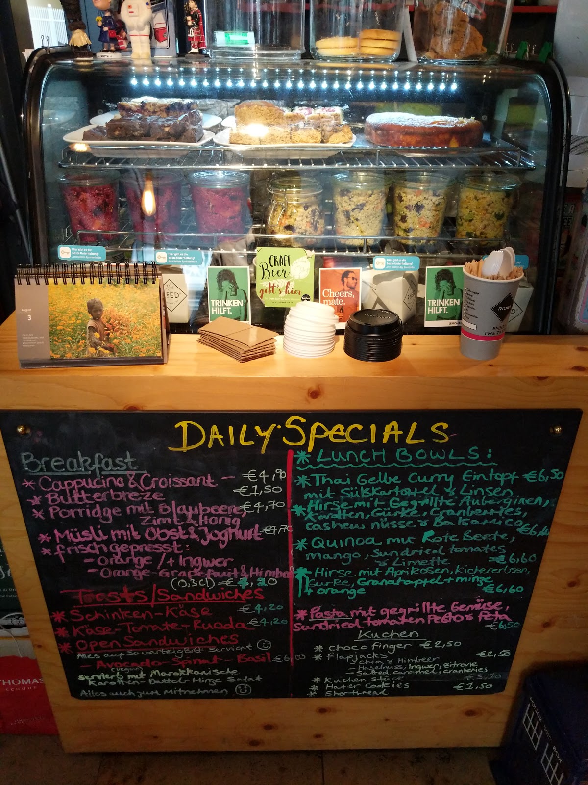 Passed by this cute little cafe and was attracted by the handwritten menu on the blackboard. The two girls working there are very friendly and speak excellent English. I tried the avocado basil bread, it was ok, nothing special. The lemon cake was moist and pretty nice, coffee was very good. Many people came in while I was there and ordered food for there or take away so it seems like a popular neighborhood place!